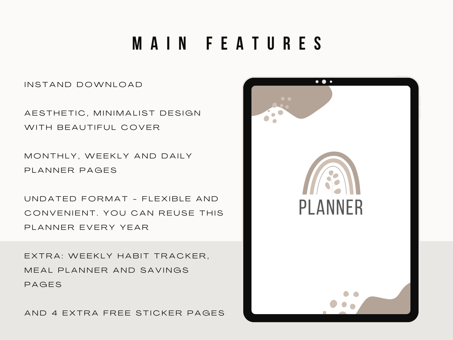 Experience the epitome of organization and productivity with our Ultimate Digital Planner Bundle! This comprehensive digital planner is designed to elevate your daily, weekly, and monthly planning routines. Seamlessly integrated for GoodNotes on iPad and easily printable for a tactile experience.