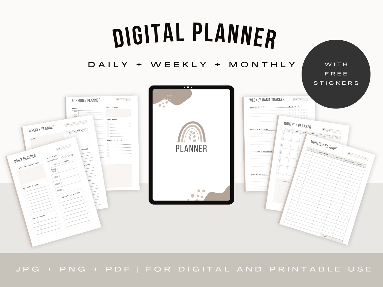 Ultimate Digital Planner Bundle: Daily, Weekly, Monthly | iPad Planner | Printable Planner | Free Digital Stickers | Instand Download
