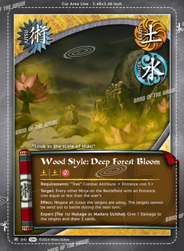 j041 - Wood Style Deep Forest Bloom Jutsu card from our Obito & Madara card set for Naruto CCG.