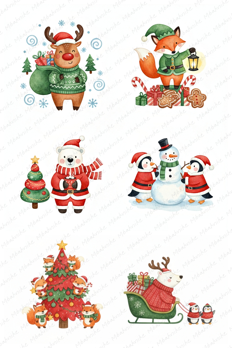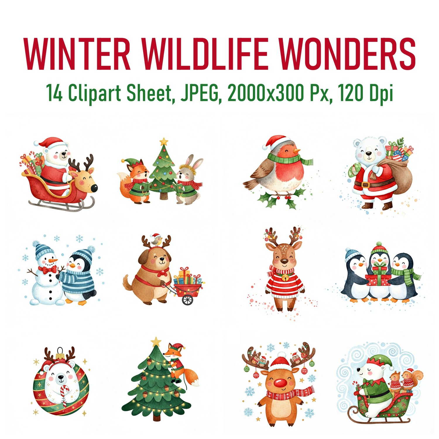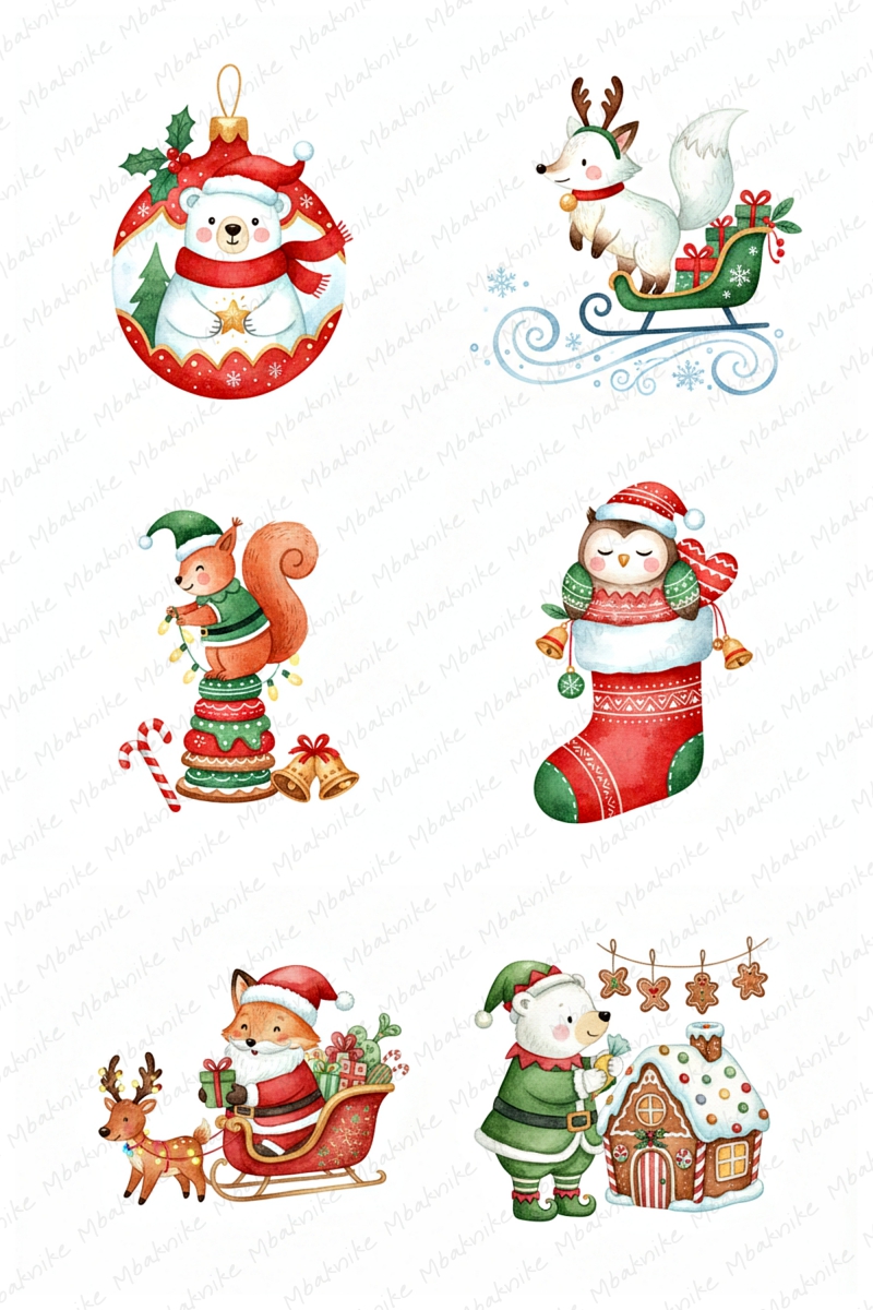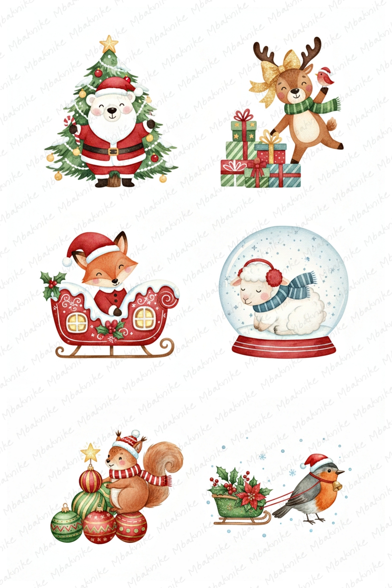 This digital product includes 14 Sheets Clipart of Christmas Mouse, 2000x3000 Px, JPEG Format, 96 DPI