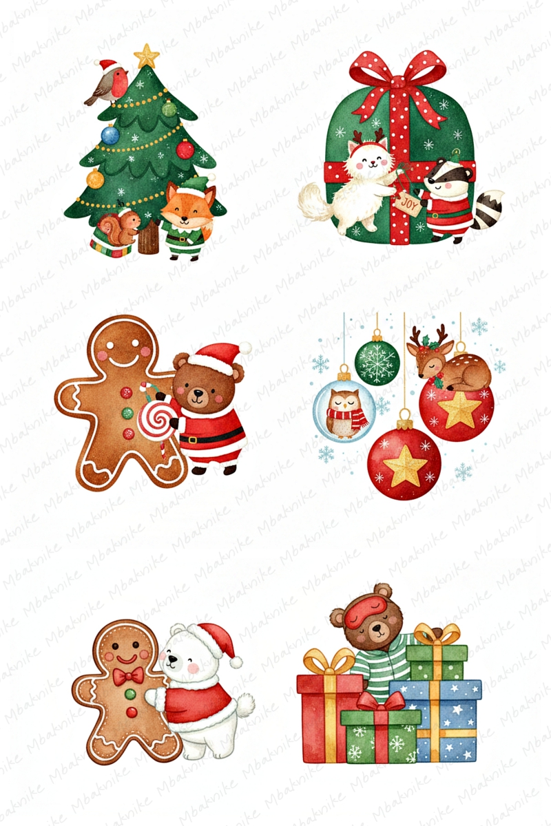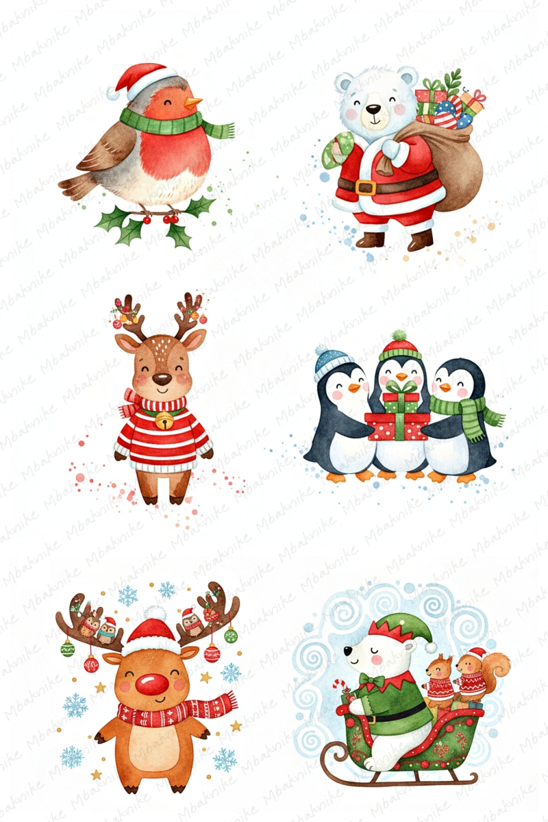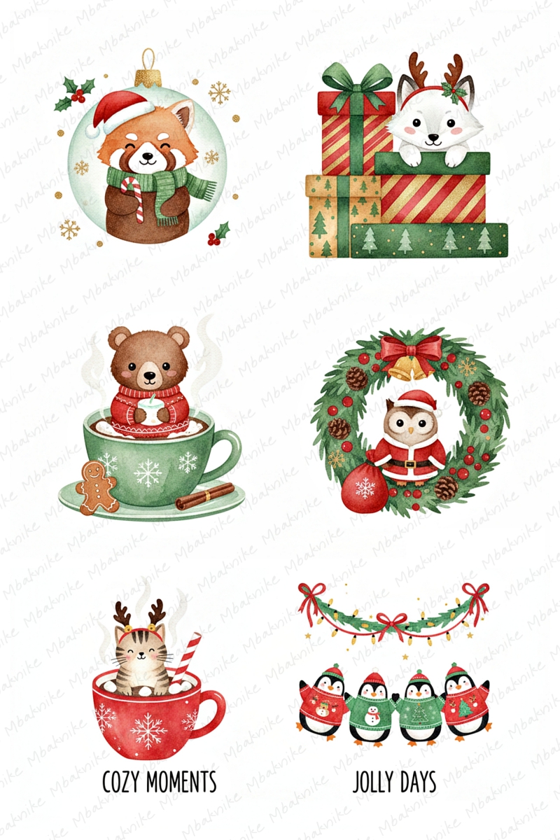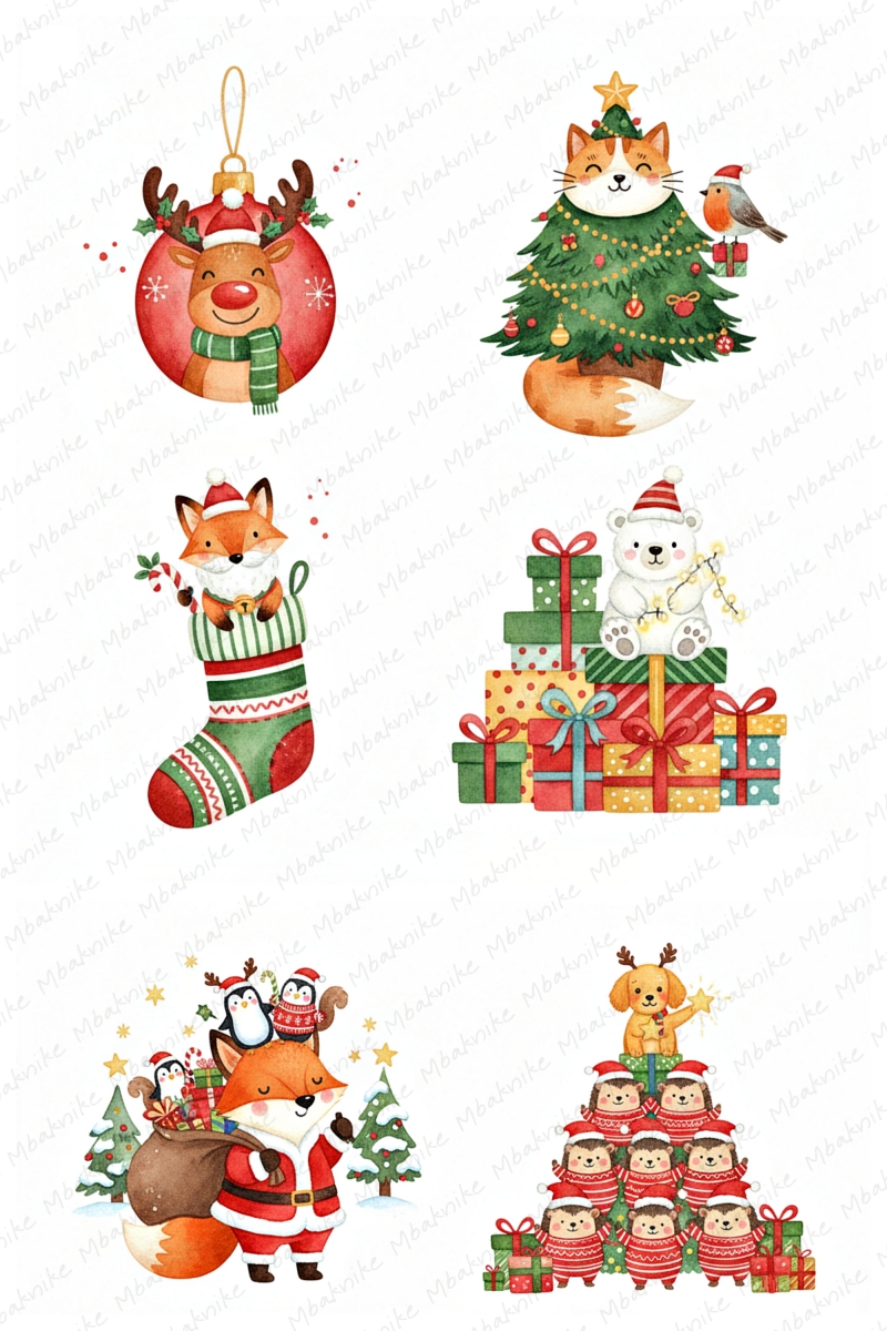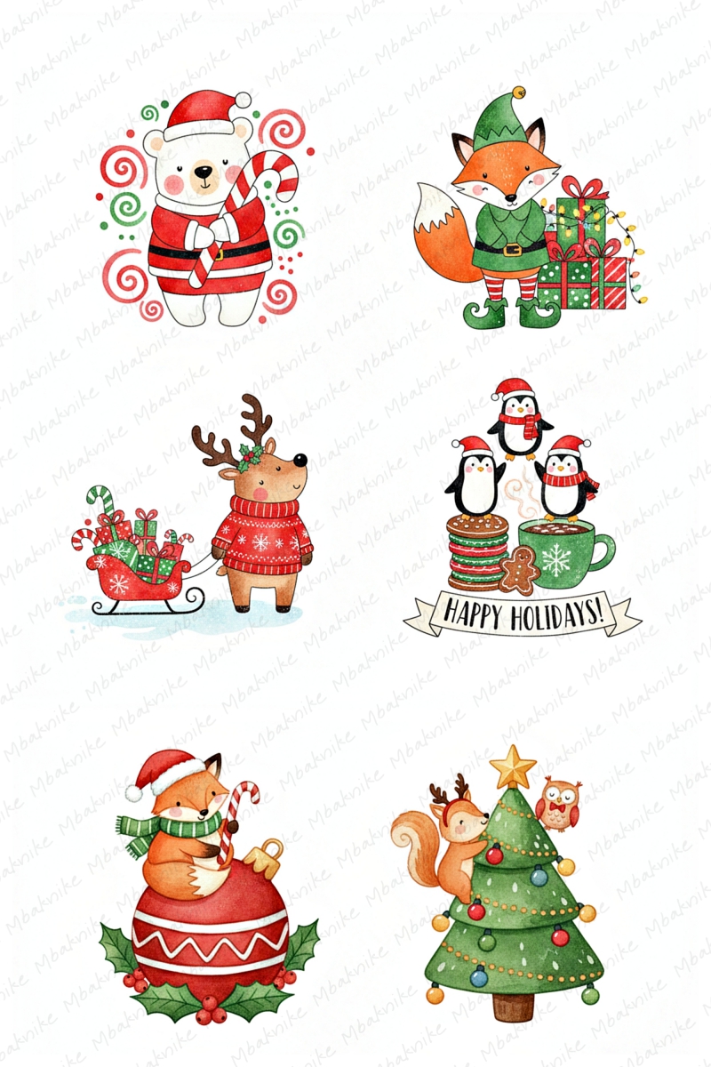 This digital product includes 14 Sheets Clipart of Christmas Mouse, 2000x3000 Px, JPEG Format, 96 DPI