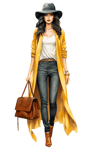 Watercolor Yellow Fashion Beautiful Girl Clipart