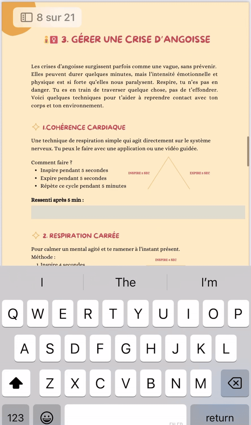 Ebook Anti-Anxiété 🌸 – Guide pratique avec champs interactifs pour apprendre à gérer le stress et l'anxiété.