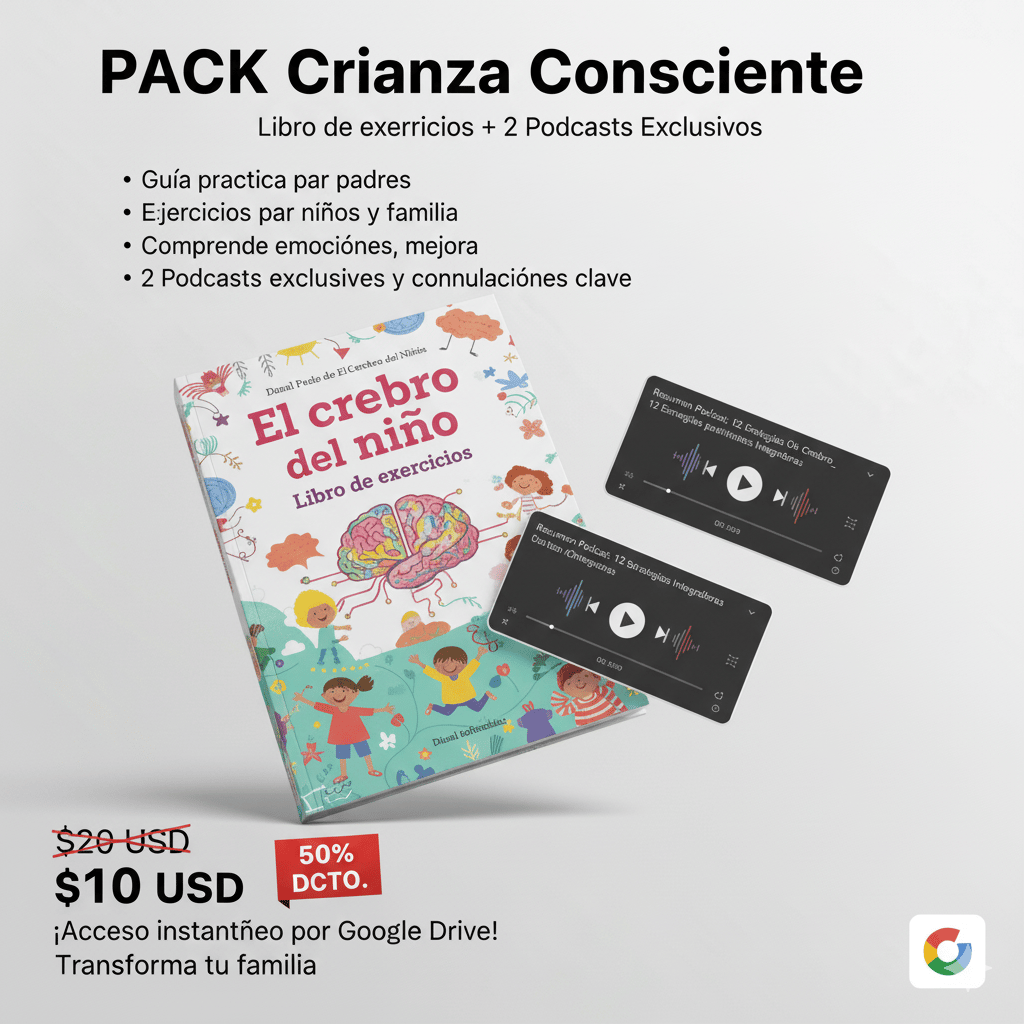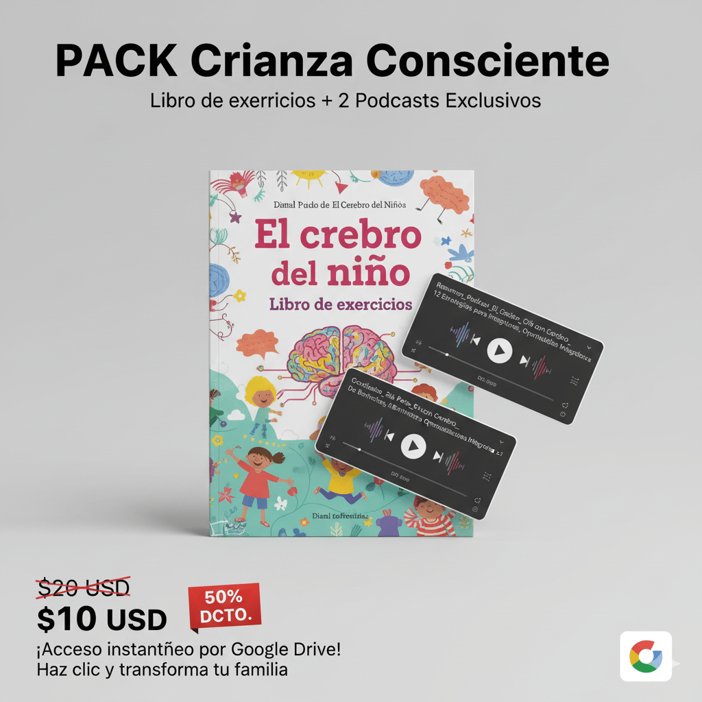 Descubre nuestro pack exclusivo "El Cerebro del Niño", una herramienta esencial para guiar a tus hijos con amor y comprensión. Este paquete digital te ofrece conocimientos prácticos y estrategias probadas para fortalecer el vínculo familiar y fomentar el desarrollo emocional.