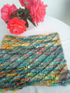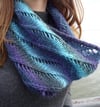 The pattern repeats itself, spiralling to build the cowl, the same sequence of eight stitches: there is no next row, the number of stitches you cast on makes all the difference.