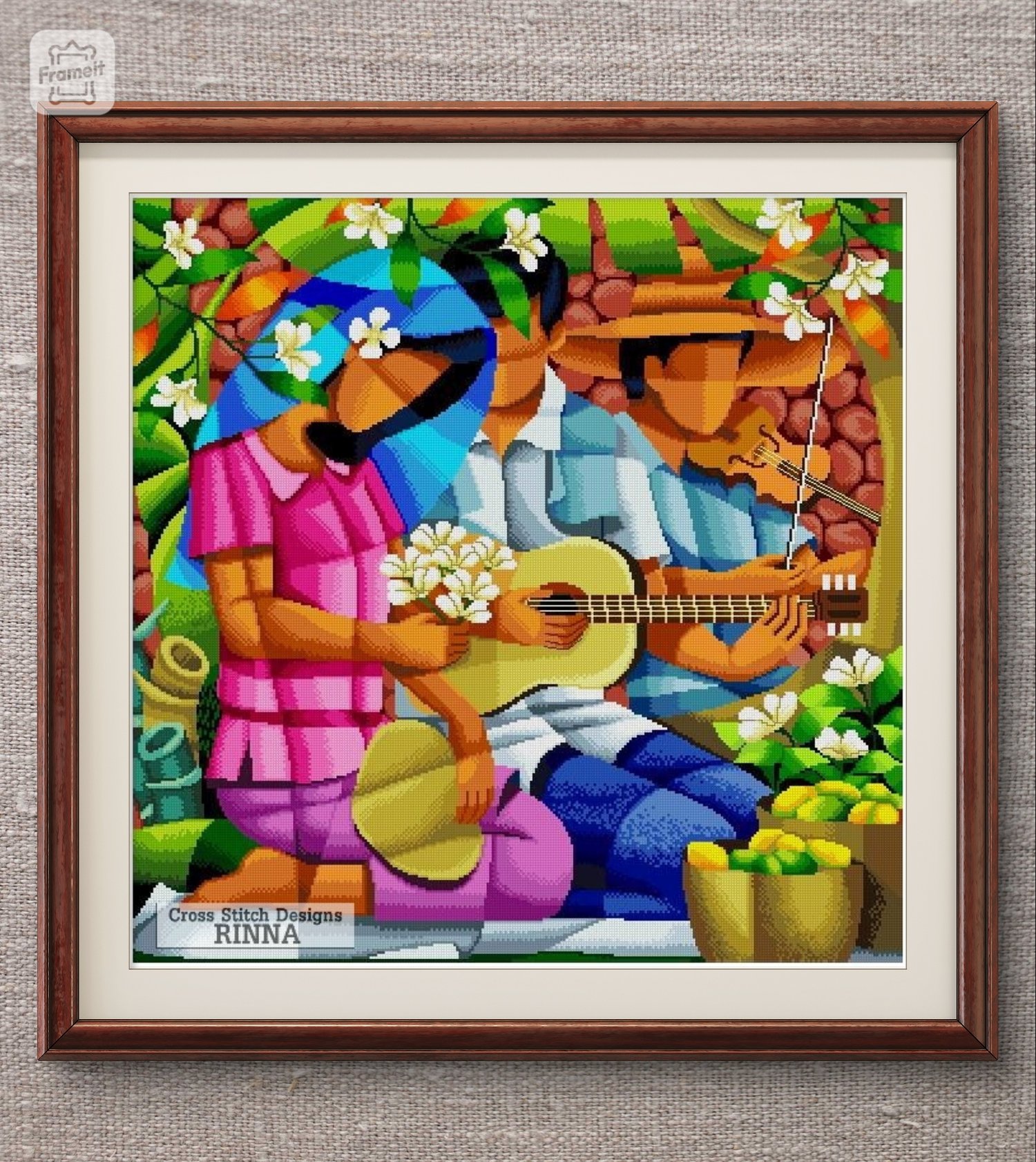 Filipino Art -Harana Viyolin at Gitara -Cross Stitch PDF Pattern Downloadable File