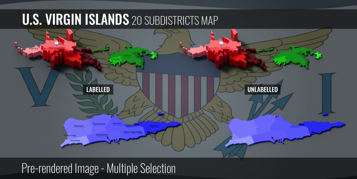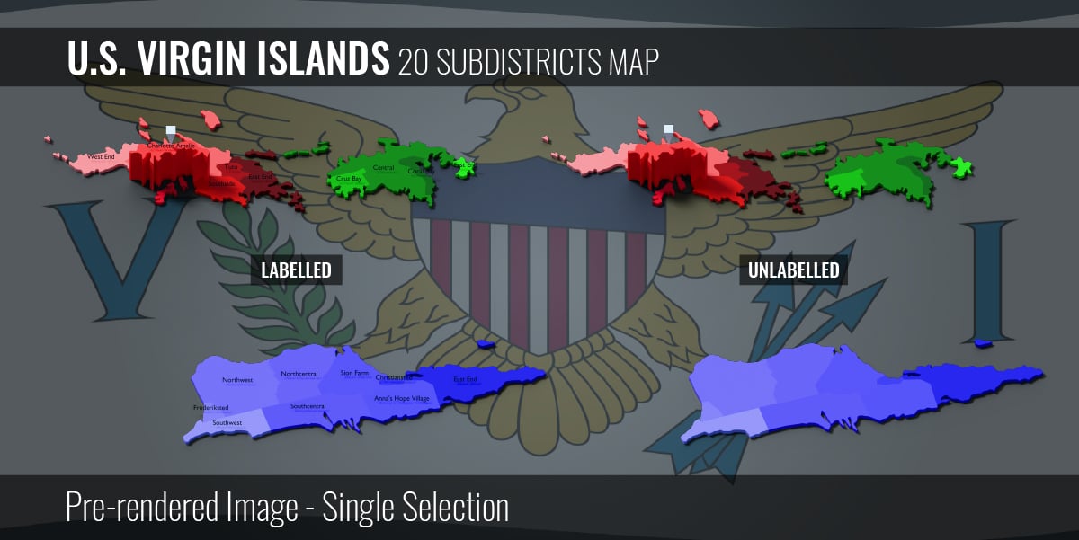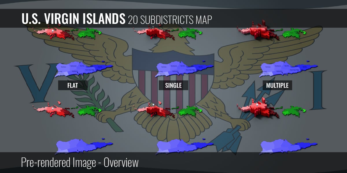 US Virgin Islands - 20 Subdistricts Map (3D + Pre-rendered Images)
