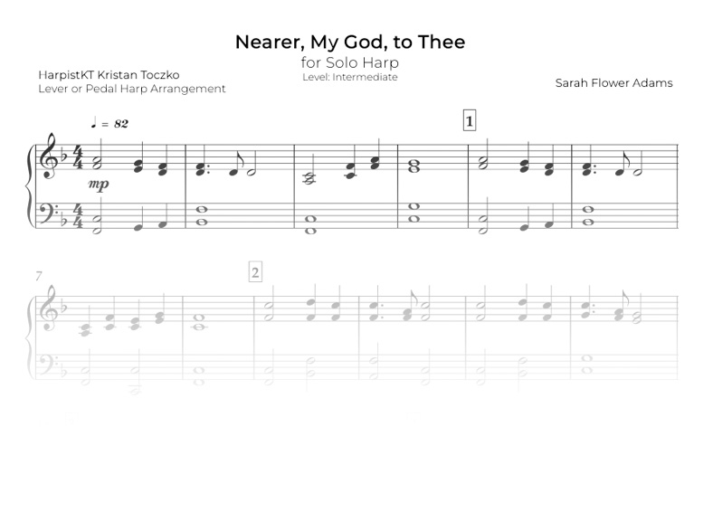 Nearer, My God, to Thee (lever or pedal harp, early intermediate)