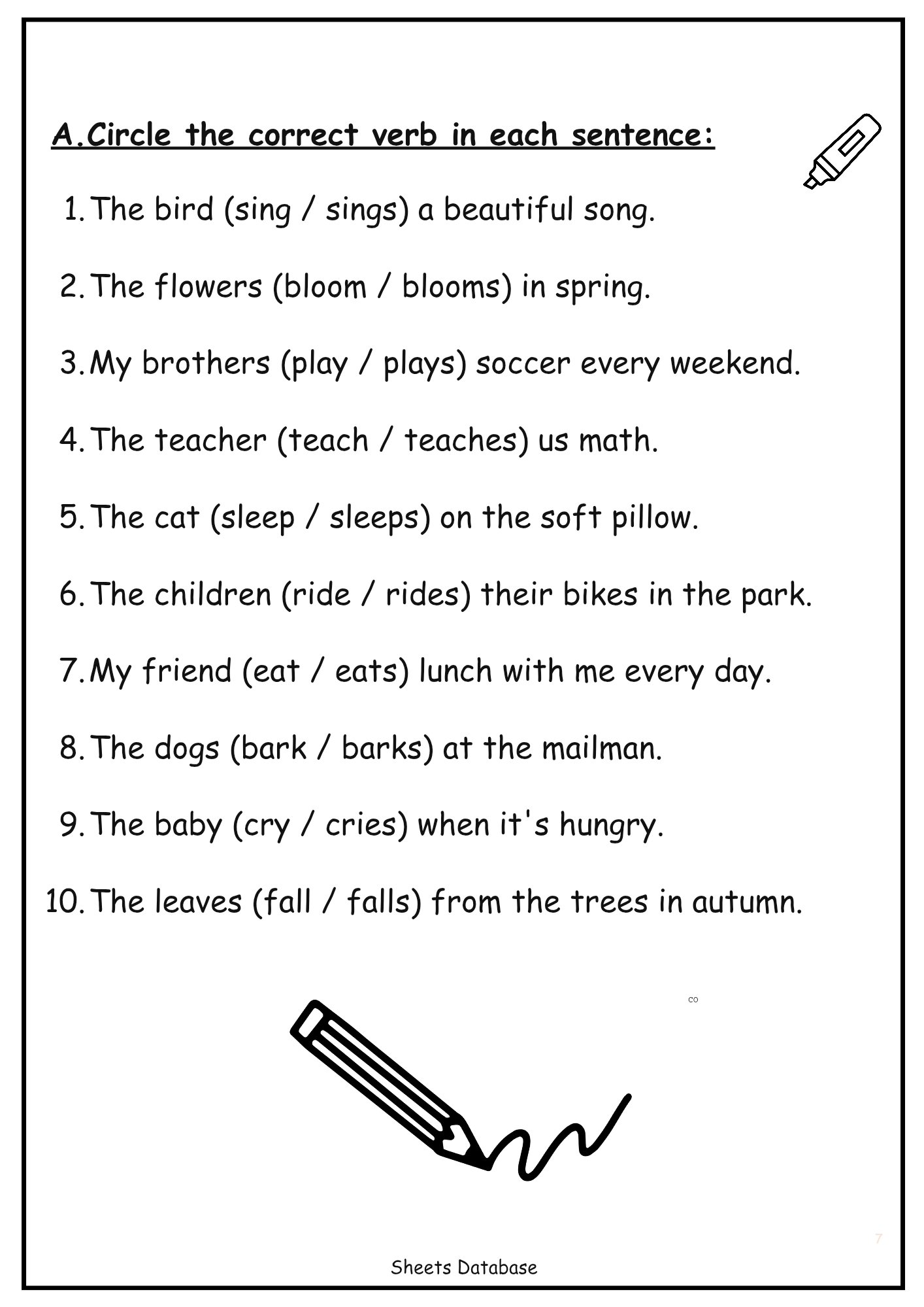 Subject–Verb Agreement — rules, examples, choose/circle & fill-in exercises.