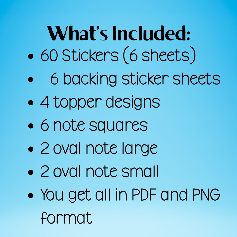 This bundle gives you everything you need to design and assemble professional-looking sticker sheets with matching toppers.