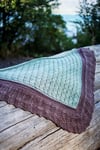 Notes: This shawl is worked from the bottom point up and then stitches are picked up along the edges of the triangle and a knitted-on edge is added.