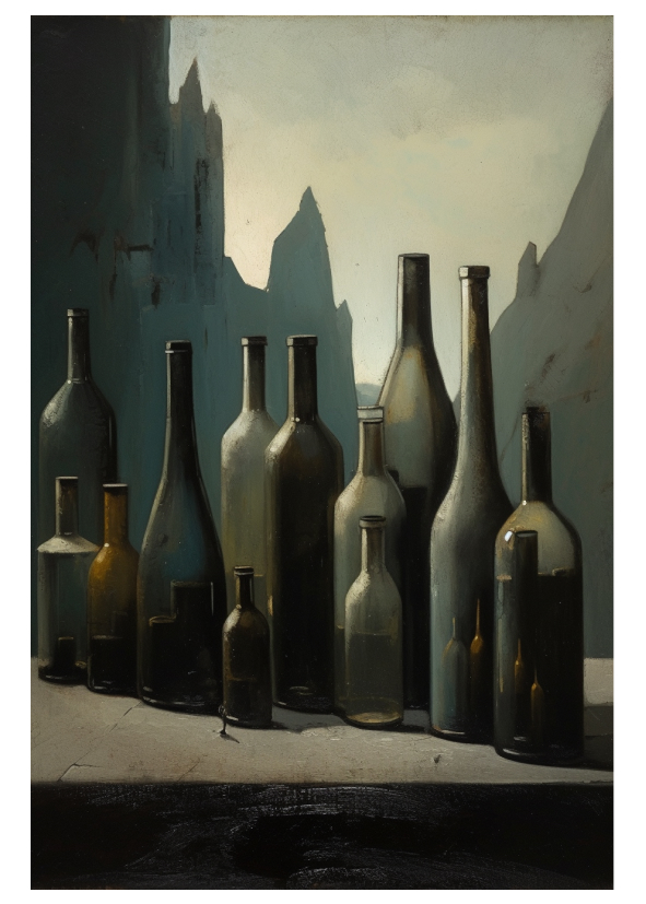 Discover the captivating beauty of minimalism through this AI-generated still life artwork. The sleek simplicity of jars and bottles takes center stage, showcasing their elegant shape and captivating textures. Dive into a world beyond reality as surreal landscapes unfold before your eyes. Surrealism merges with still life, creating a visual feast of otherworldly beauty and hints of mysterious horror. Step into this daily escape, where art and AI converge to push the boundaries of imagination. Explore the gallery of generative designs and let your senses be captivated by the magic of daily inspiration.