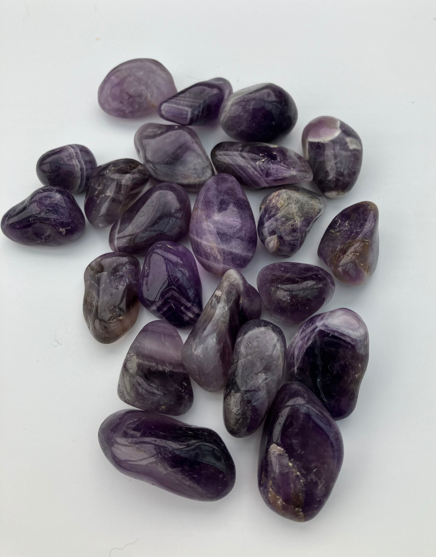 Amethyst tumble stone, every tumble stone will have a different size and shape, please look at the photo for reference. These are NATURAL crystals, and some natural inclusions and indentations are to be expected within 15-20 mm.
