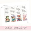 Do you love reading books or are you looking for a cute bookish gift for a book lover? This printable bookmark sheet is a great choice for any bookworm or member of a book club. These reading accessories are also cute additions to a reading tracker, reading journal, or reading planner because they contain witty and funny quotes and illustrations of cute animals reading.