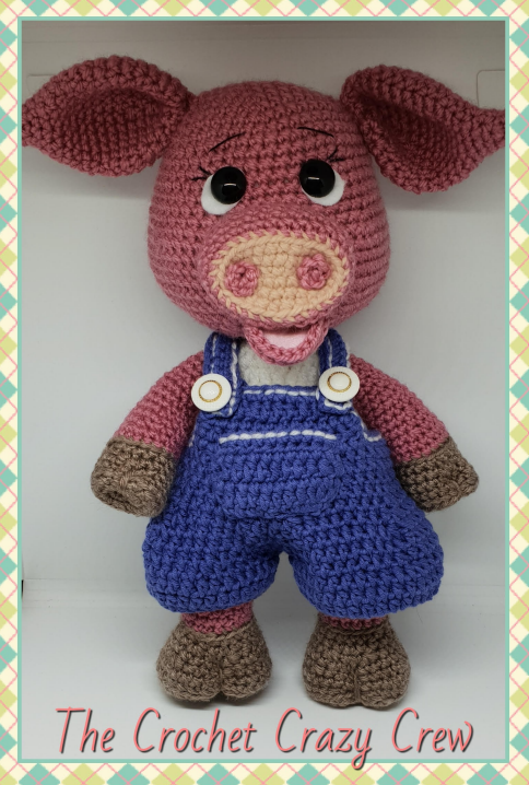 we would like to introduce to you 'Percy The Pig' he is stands at approximately 15" tall and is worked in basic stitches and rounds, included in this pattern:-