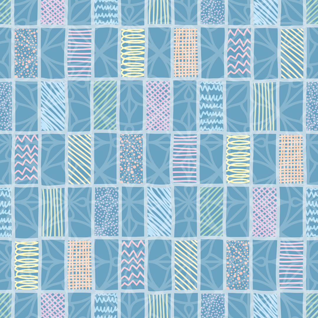 Vector Doodle Grid Repeat Pattern in Pastel Colors