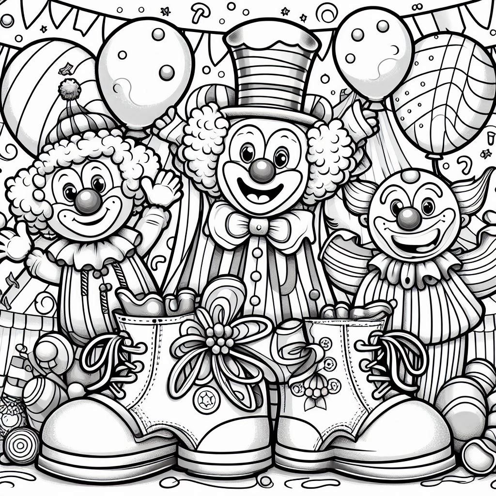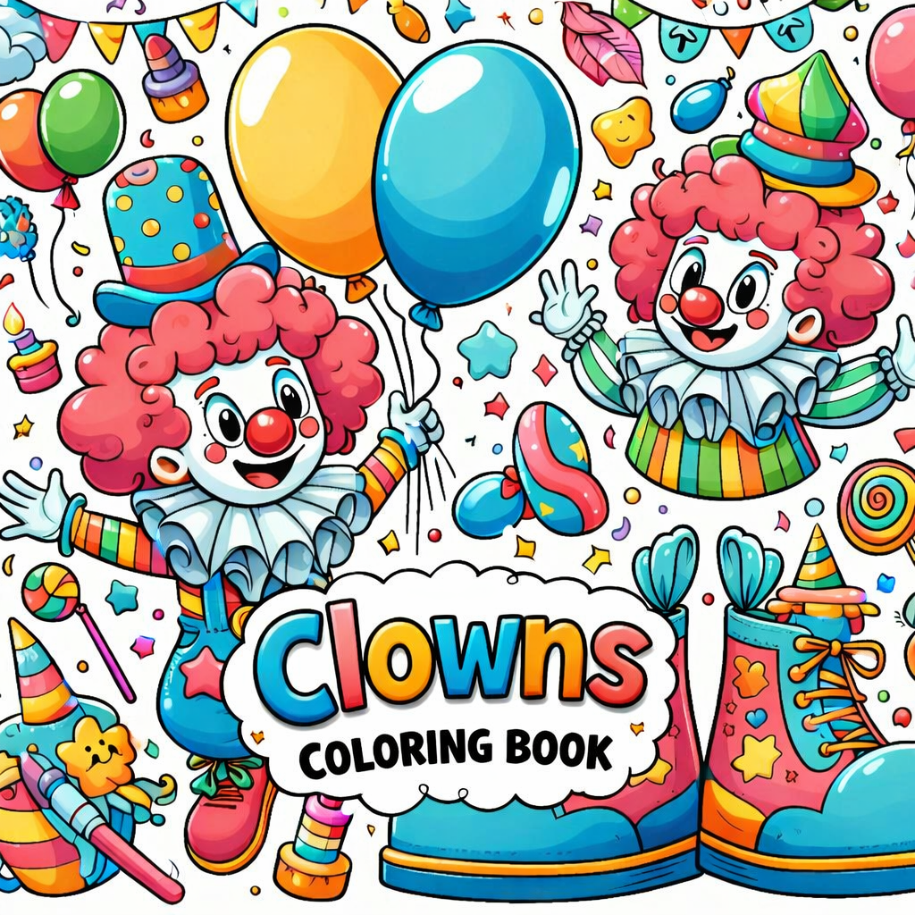 Clowns, 66 designs, coloring ebook, digital printable product, instantly download