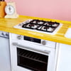 This little stove features a working door, a movable rack, turning knobs and a detached cooktop.