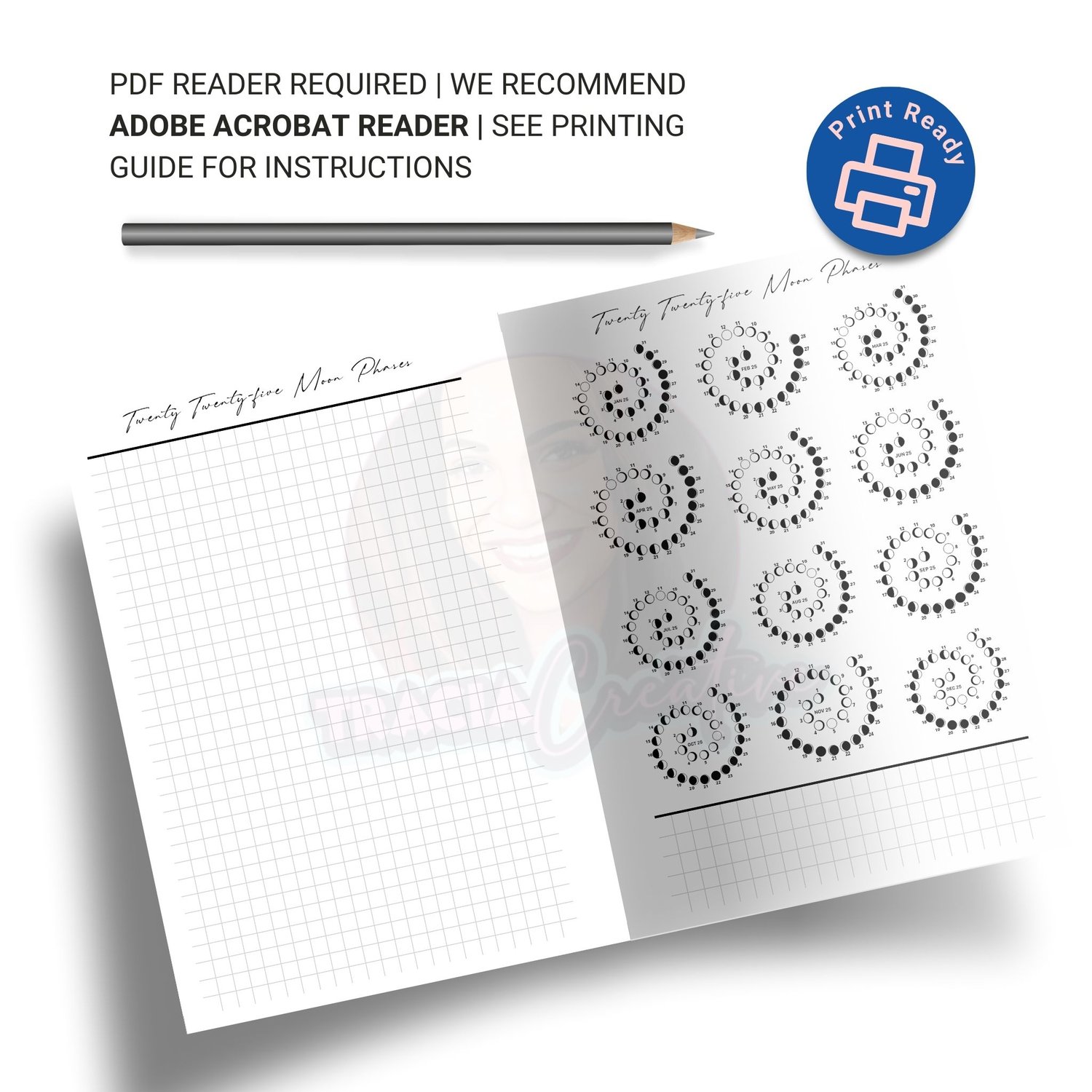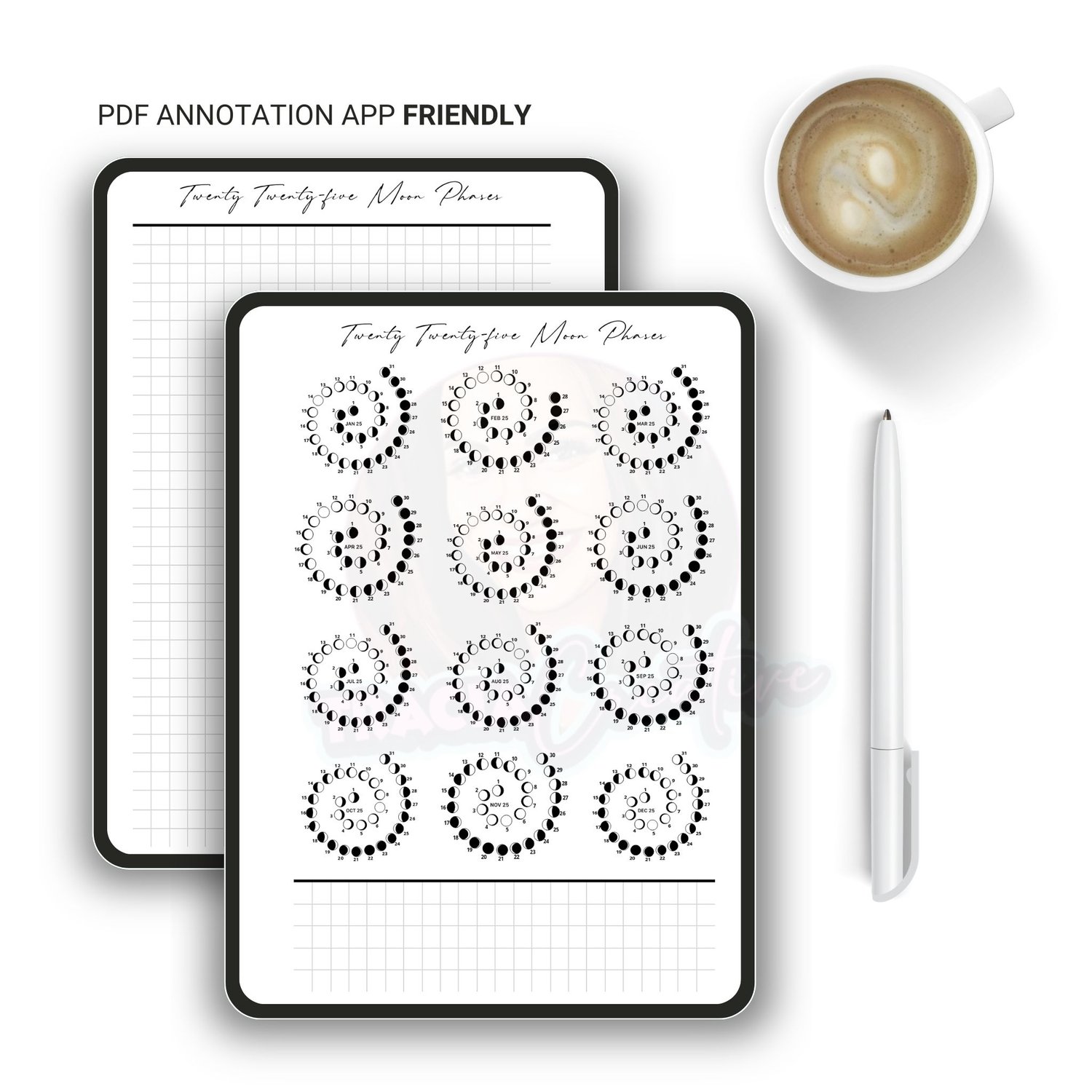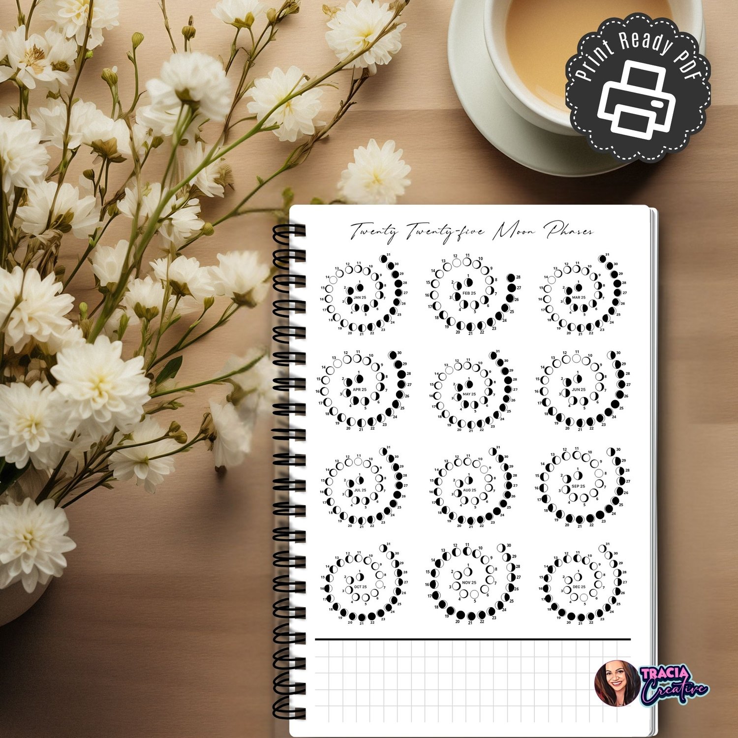 2025 Moon Phase Calendar with Notes - Printable Digital Download PDF