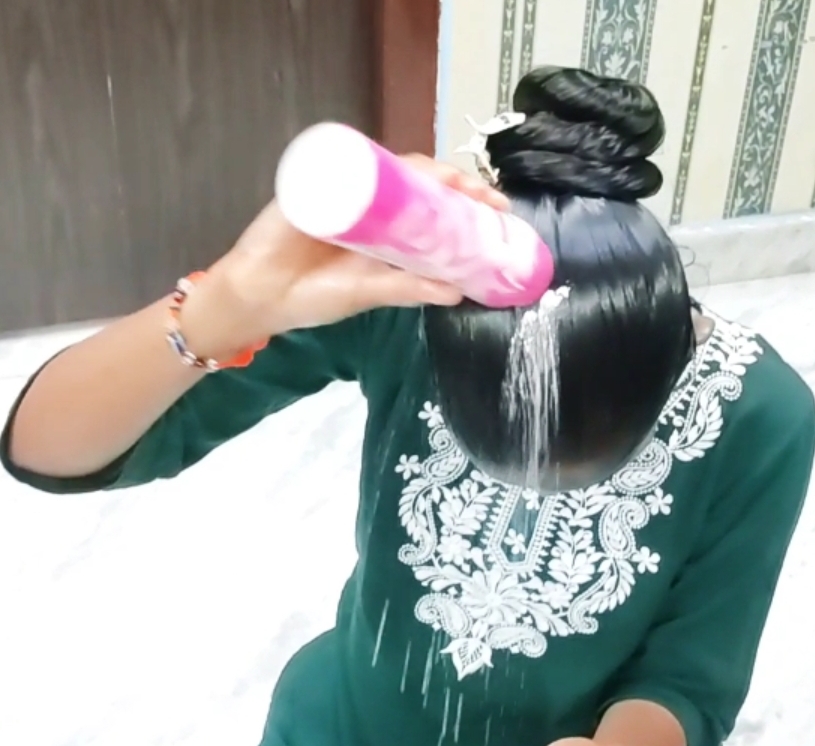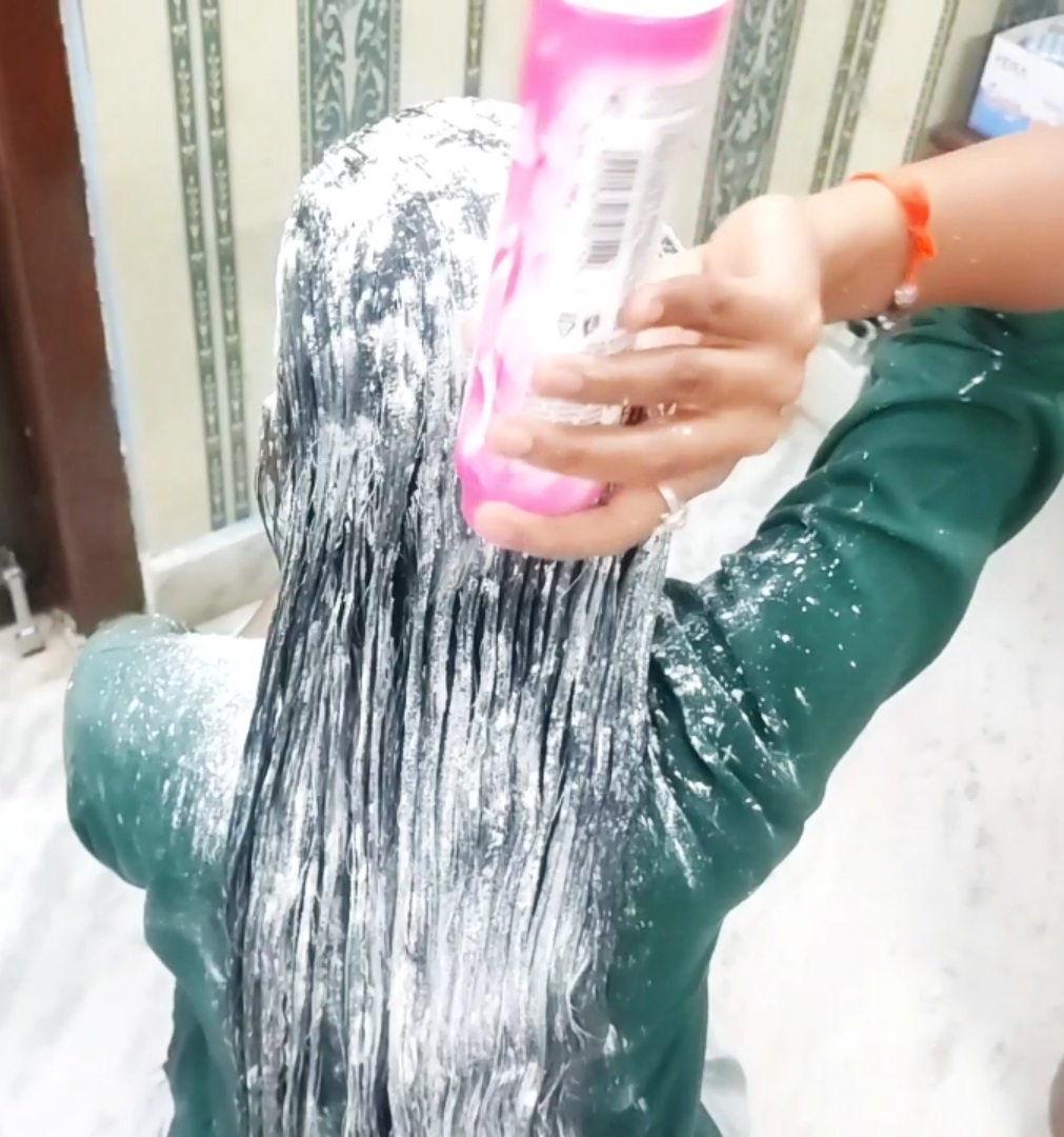 200ml Oiling and talcum powder in longhair 😍 #hairstyles #longhair #oilyhair