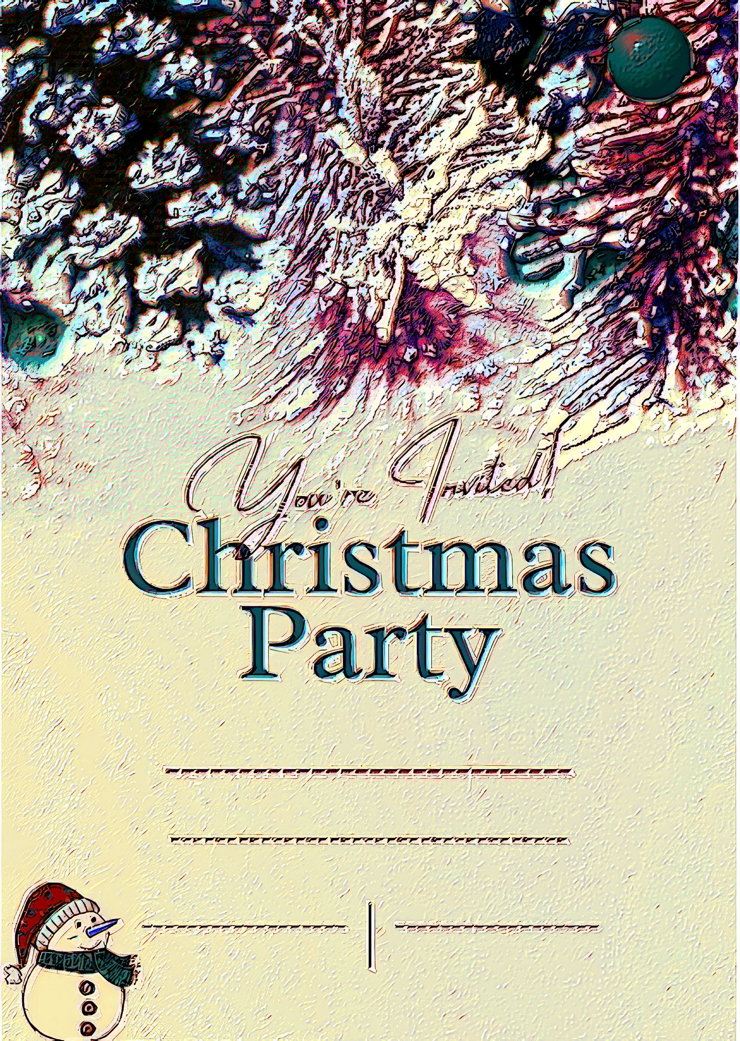 Celebrate the arrival of the New Year with our customizable New Year's party invitation. This stylish digital artwork features a festive design with the greeting "You're Invited" and "Christmas Party" at the top, leaving blank spaces below for you to add your own details, creating a unique and personal invitation for your event.