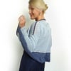 The modish dropped shoulders and graphic stripes are masterly balanced by a little eyelet pattern for a feminine touch.