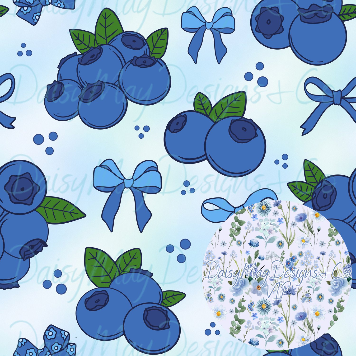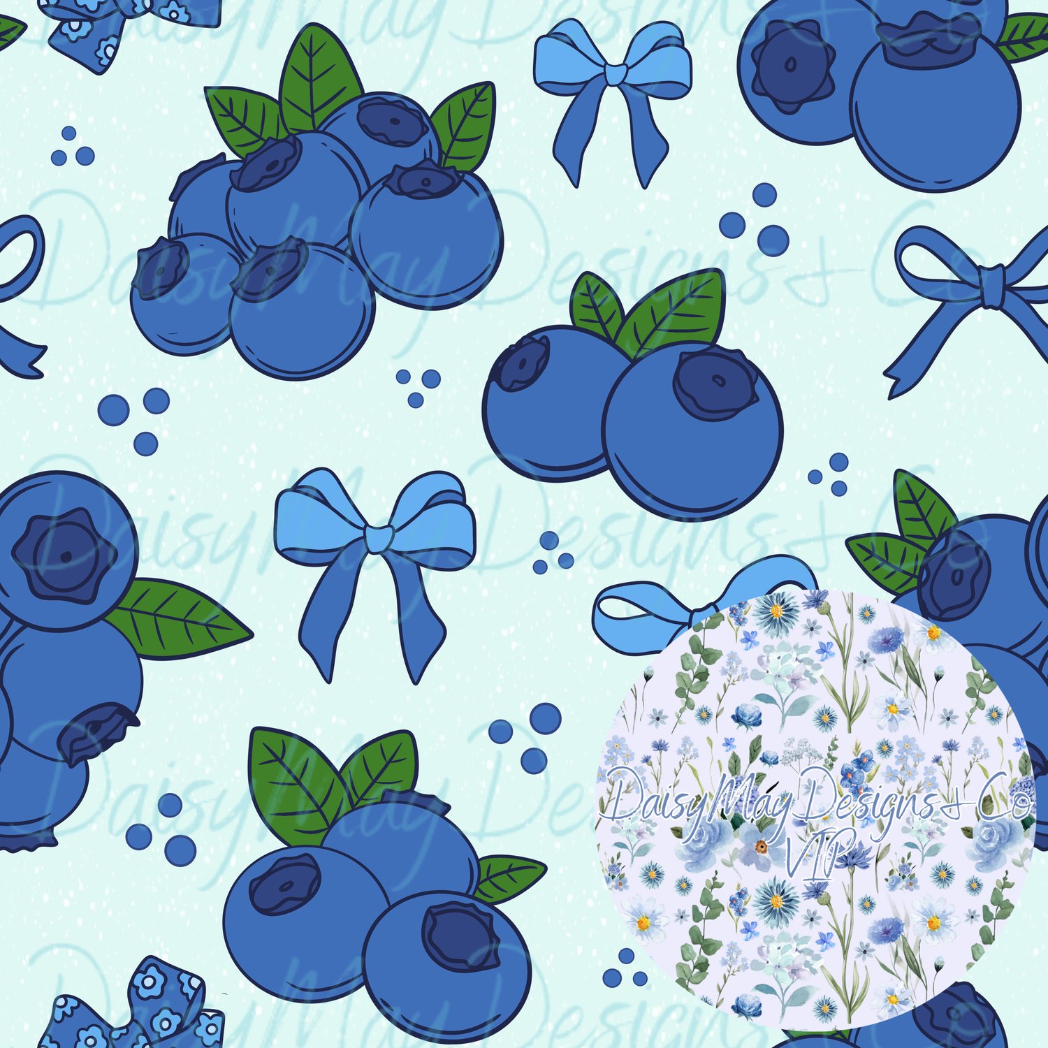 Blueberry bows is a handrawn seamless file with 5 different colorways & limited to 10 people as well as 25/26 seamless drive holders.
