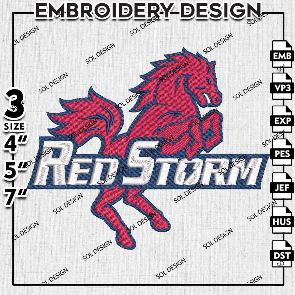 NCAA Red Storm College Football Team Logo Embroidery Designs, NCAA St. Johns Red Storm Machine Embroidery Files, NCAA Logo embroidery designs, NCAA St. Johns Logo, Digital Download