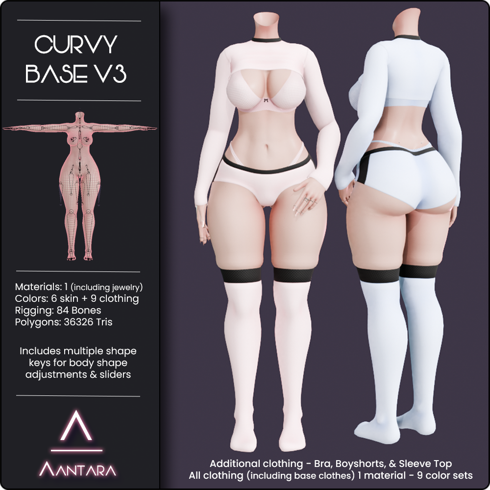 Clothes Only - Includes all clothing and no base mesh. Bra, thong, pasties, boyshorts, thigh highs, and sleeve top. You'll also receive previous versions.