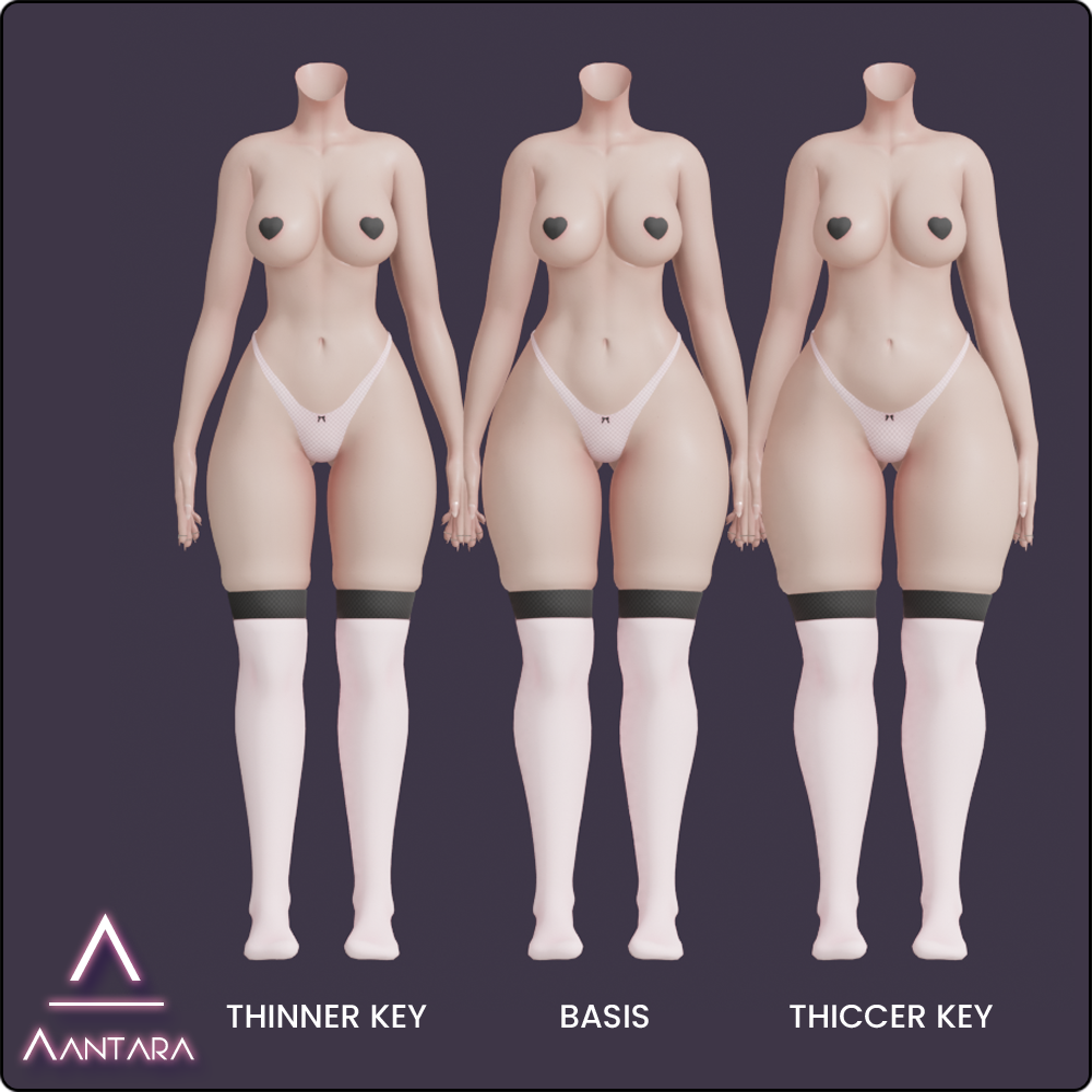 Shape Keys! - I've added several shape keys to both the base and the clothing to allow for some in-game customization sliders, including: