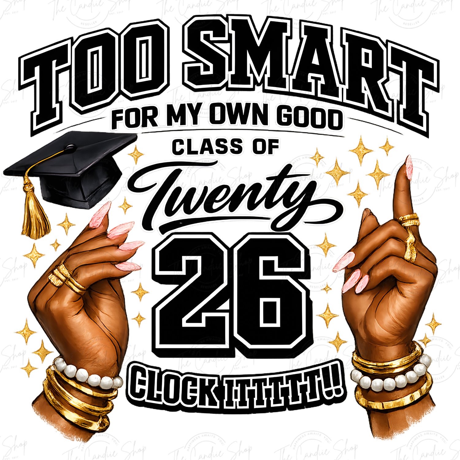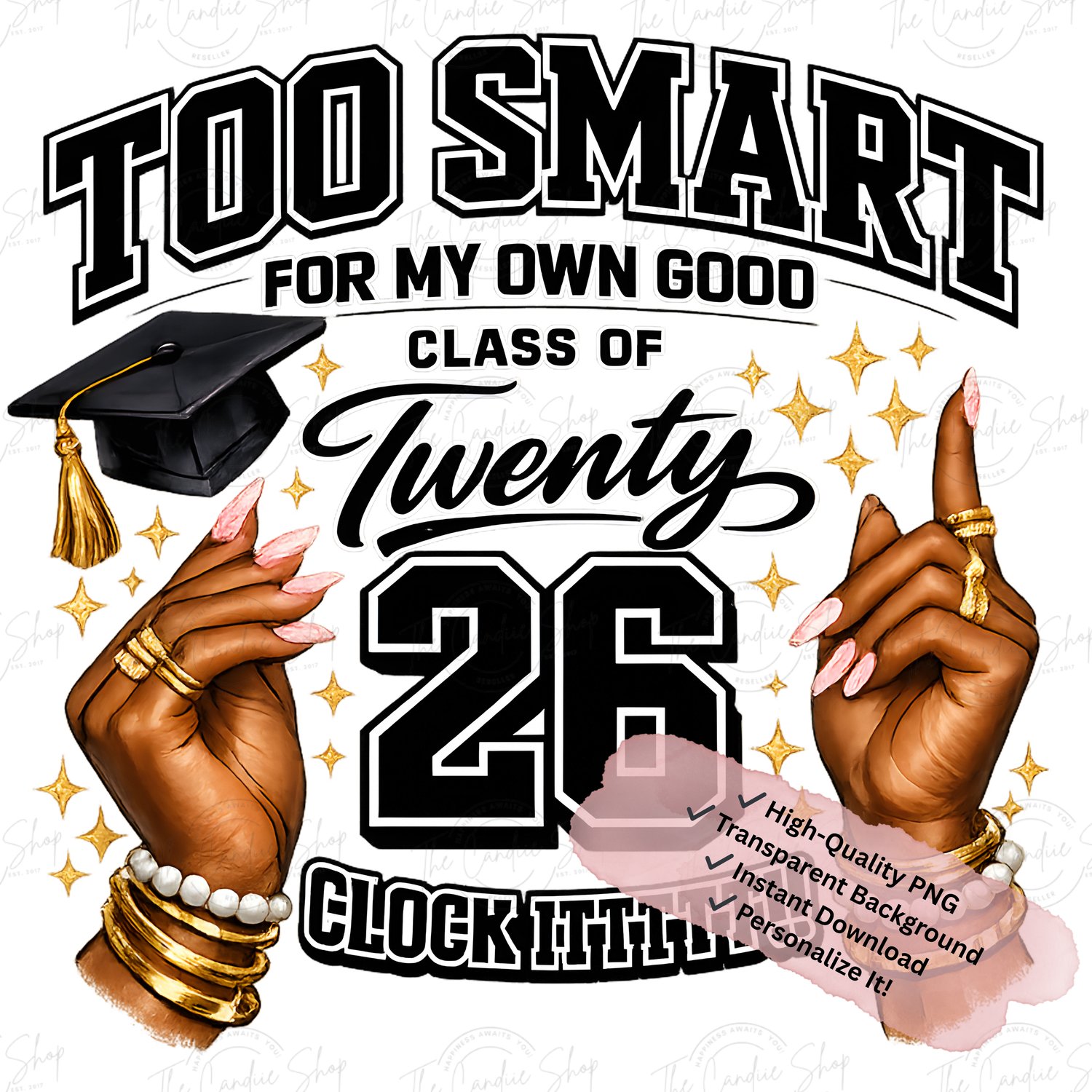 Too Smart Class of 2026 Graduation PNG, Clock Ittttt Grad Sublimation Design, Black Girl Luxury Senior PNG
