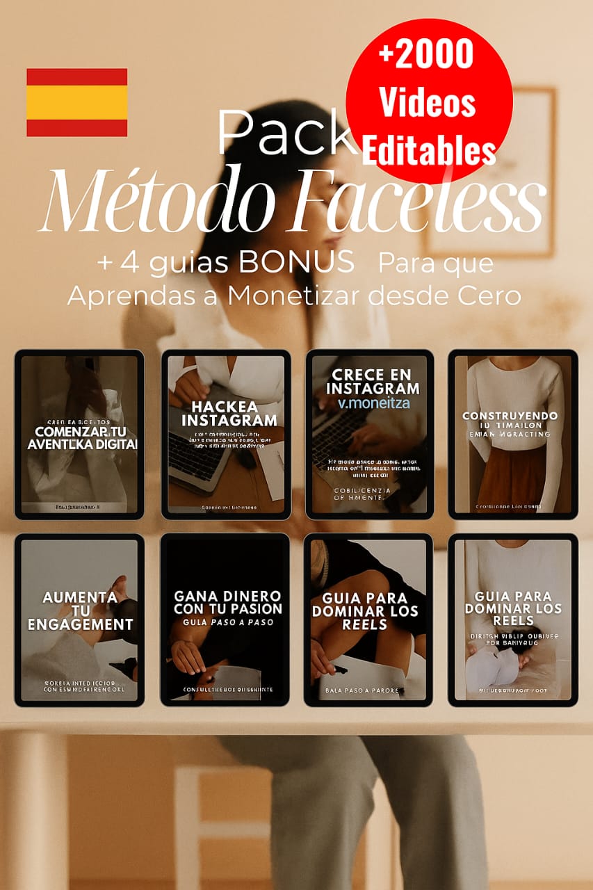 Incluye 2000 videos digitales + 4 guías prácticas para crear contenido y monetizar sin mostrar tu rostro.