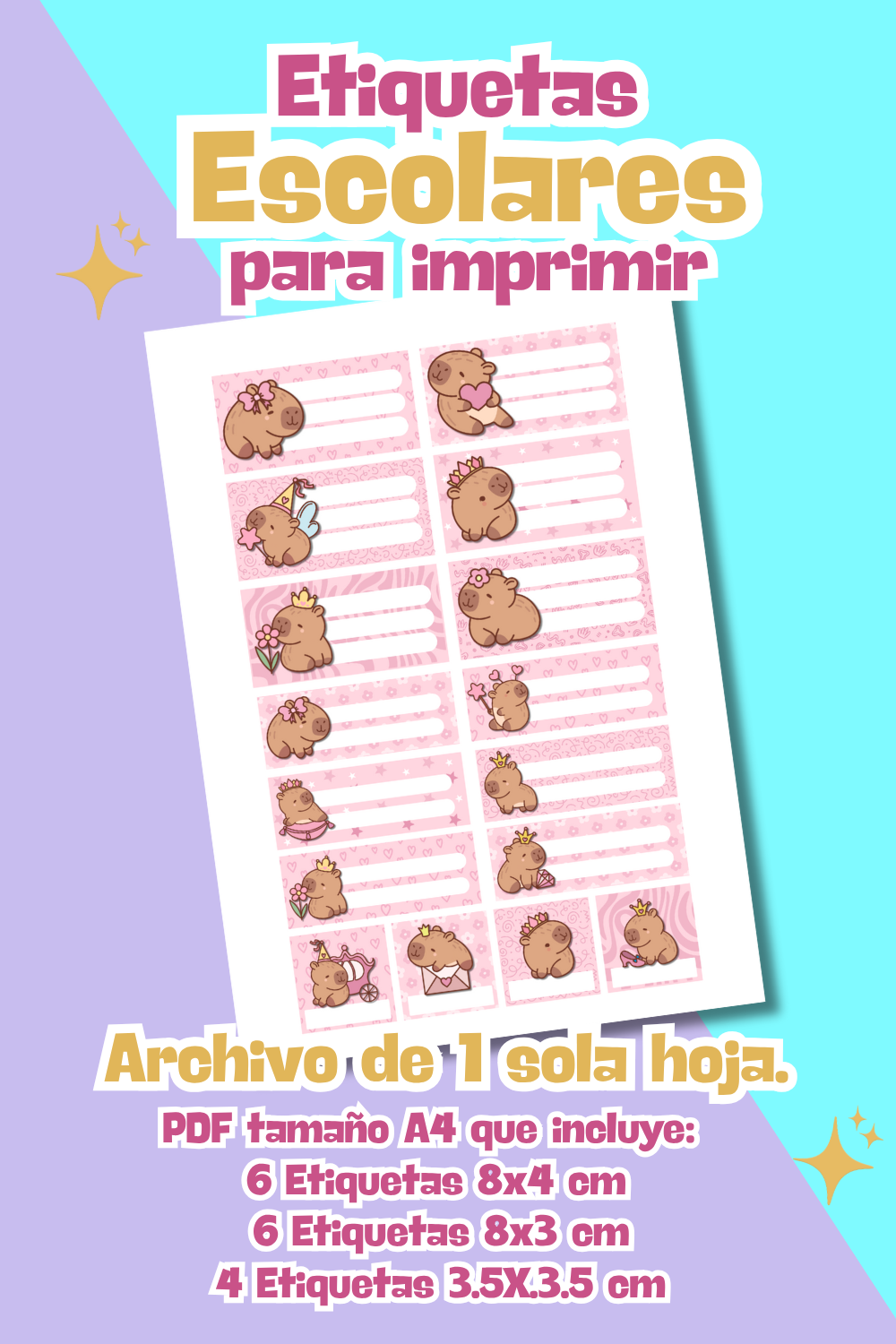 Etiquetas Escolares para imprimir Capibaras - 1 hoja