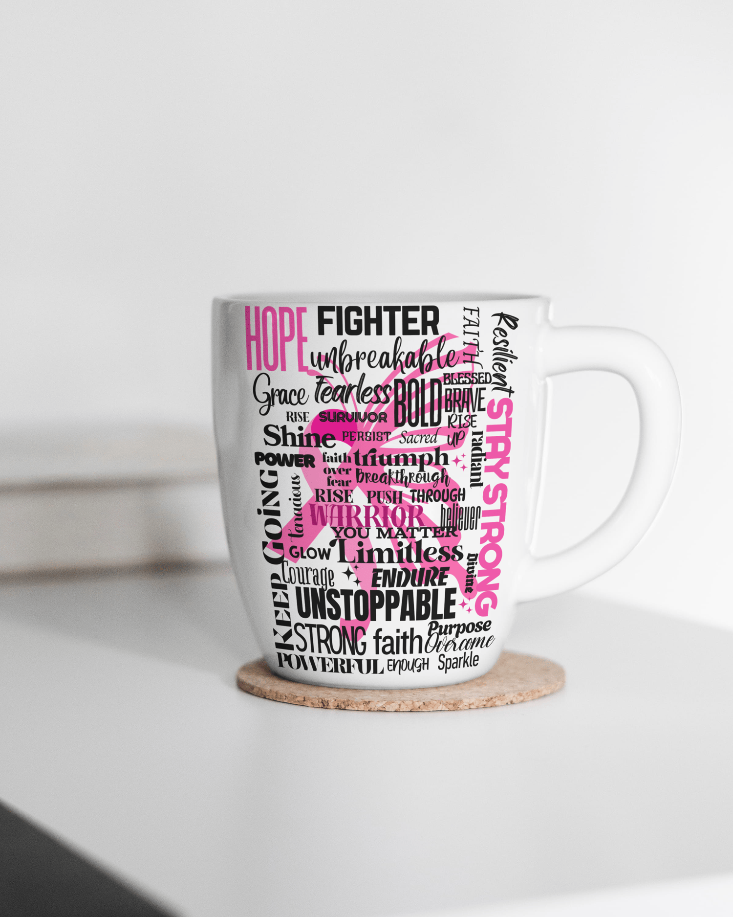 Celebrate strength, hope, and resilience with this Breast Cancer Awareness digital design bundle. Featuring bold typography word art in black and pink, this versatile design can be used for multiple sublimation and printing projects. Perfect for Breast Cancer Awareness Month, survivor gifts, and supportive merchandise.