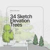In our hand-drawn architectural renderings, architects present their ideas through plans, sections, and elevations. Building on the initial Tree Plans collection, we have now produced a matching set of Tree Elevations—each drawn at the same scale and in the same hand-drawn style to ensure cohesive, high-impact presentations. Both collections were created with Autodesk Sketchbook and the Architect Toolkit and are offered in two formats: brush-set files for Sketchbook and transparent-PNG assets for any digital-imaging application. To enhance authenticity, the trees are organized into four parallel categories—figurative trees, deciduous trees, conifers, and palms—with varied sizes and shapes in each group to convey natural variety on elevation views.