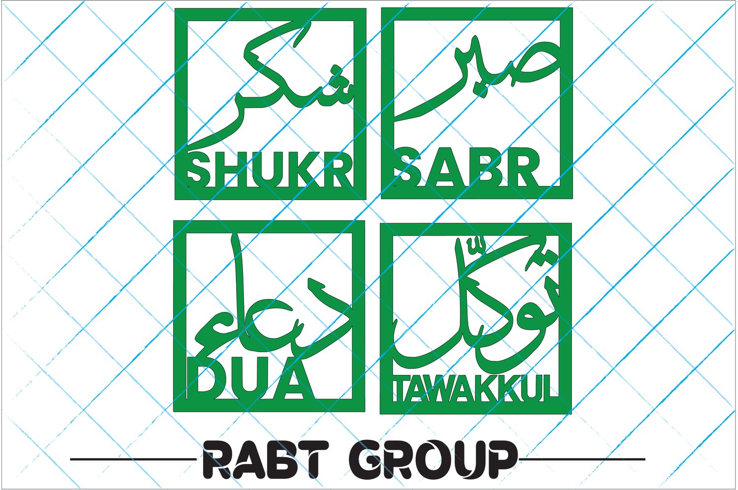 Sabr, Shukar, Tawakkul, and Dua Digital Design Inspirational Calligraphy for CNC Cutting Enhance your projects with a beautifully crafted design featuring the essential Islamic concepts: Sabr (صبر) - Patience Shukar (شكر) - Gratitude Tawakkul (توكّل) -