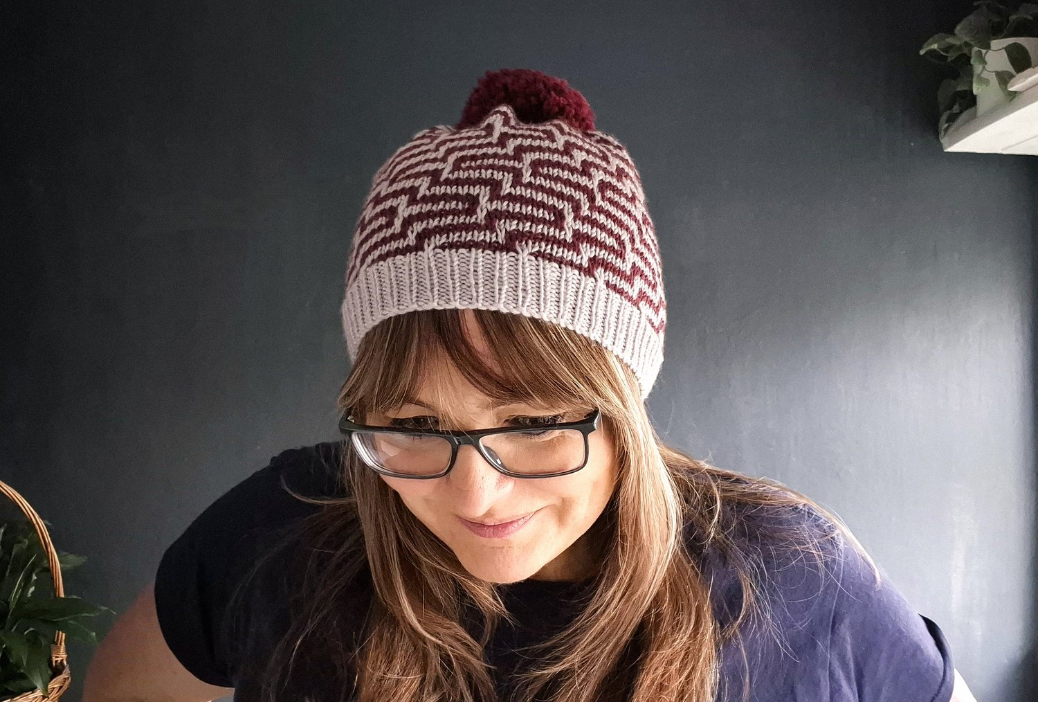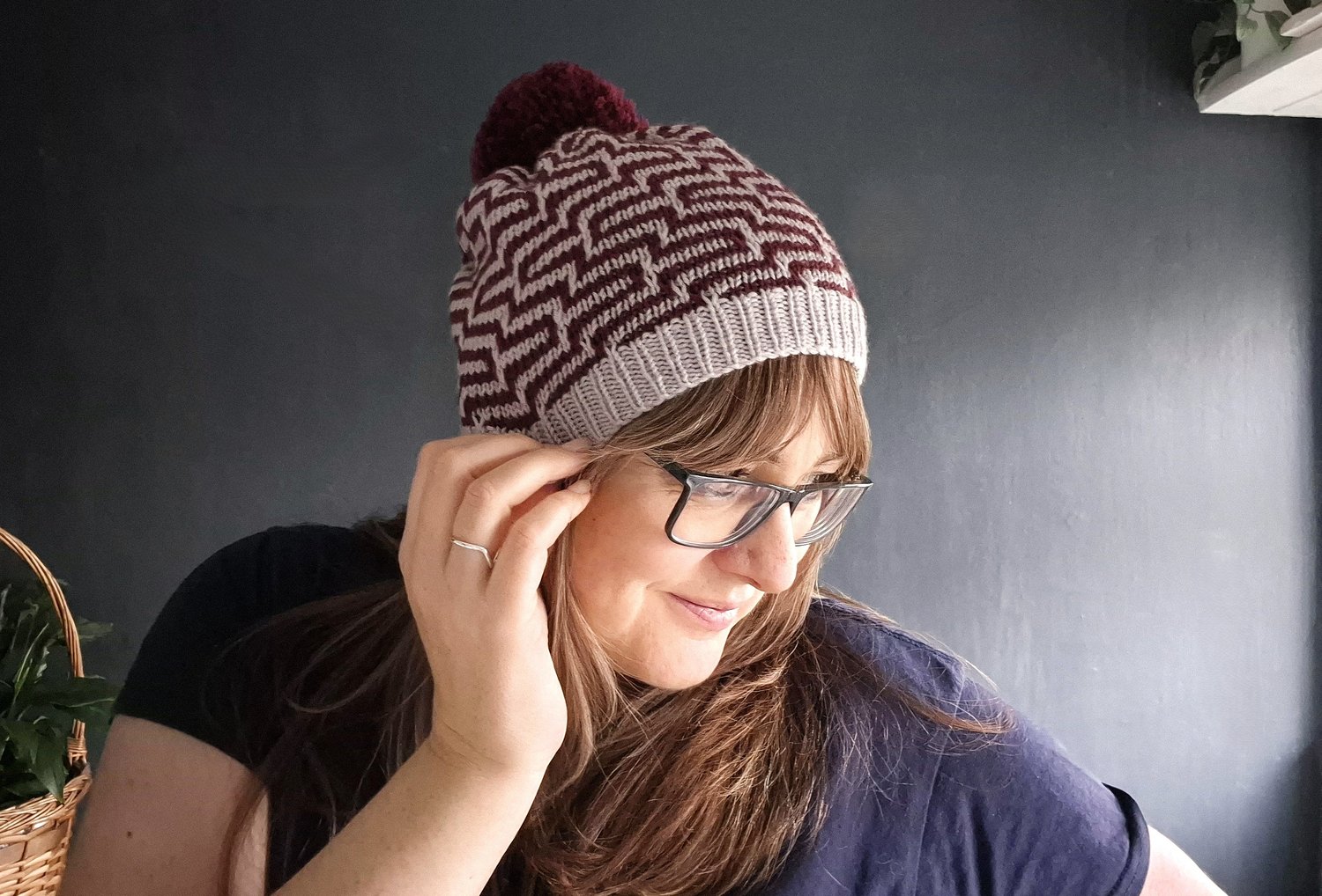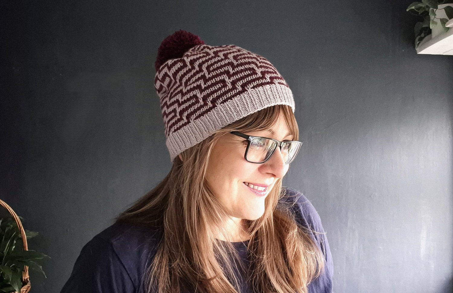 “Slip stitch colourwork is one of our favourite techniques and if you can work two-row stripes, you can make this hat. Slipping certain stitches means you are reintroducing previous shades into your row.” LK magazine