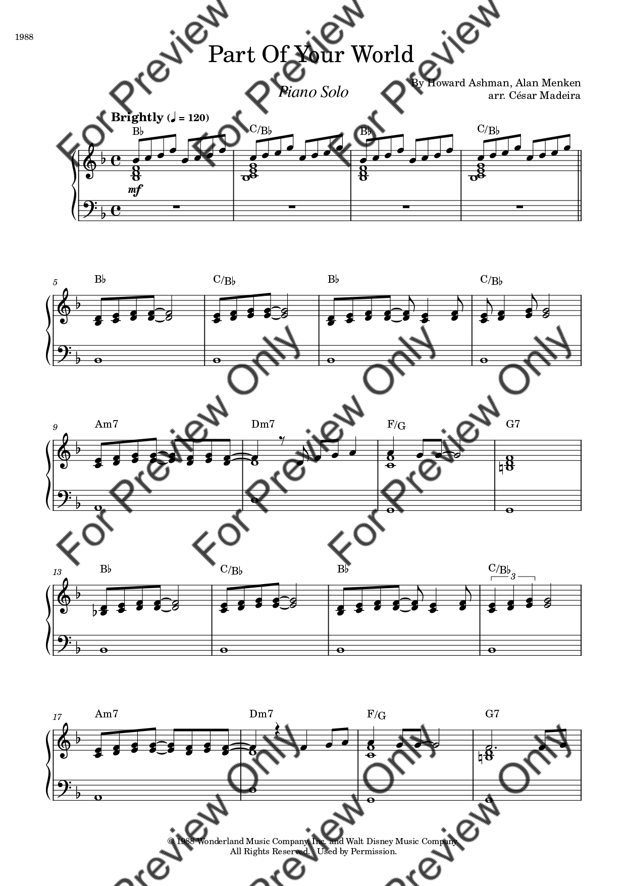 Part Of Your World from The Little Mermaid by Alan Menken. Arrangement for Piano Solo. With Full Score. Have fun!