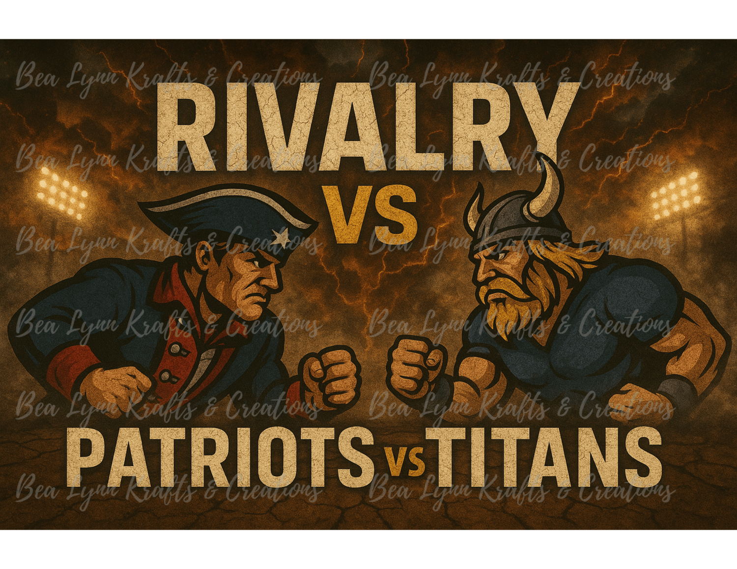 Brace yourself for a showdown of epic proportions with this intense Patriots vs Titans Rivalry transparent PNG! Featuring two fierce mascots—an iron-jawed Patriot locked in combat with a hammer-fisted Viking Titan—this design crackles with energy, set against a stormy, lightning-lit stadium backdrop. Perfect for fans of both squads, this bold artwork brings your favorite football rivalry to life in a way that’s ready for print and bursting with adrenaline.