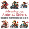 Transform your creative projects with our "Adventurous Animal Rider Clipart" collection! This digital pack includes 20 unique and whimsical images, each in PNG transparent format at a high resolution of 300 dpi and 4096 x 4096 px.