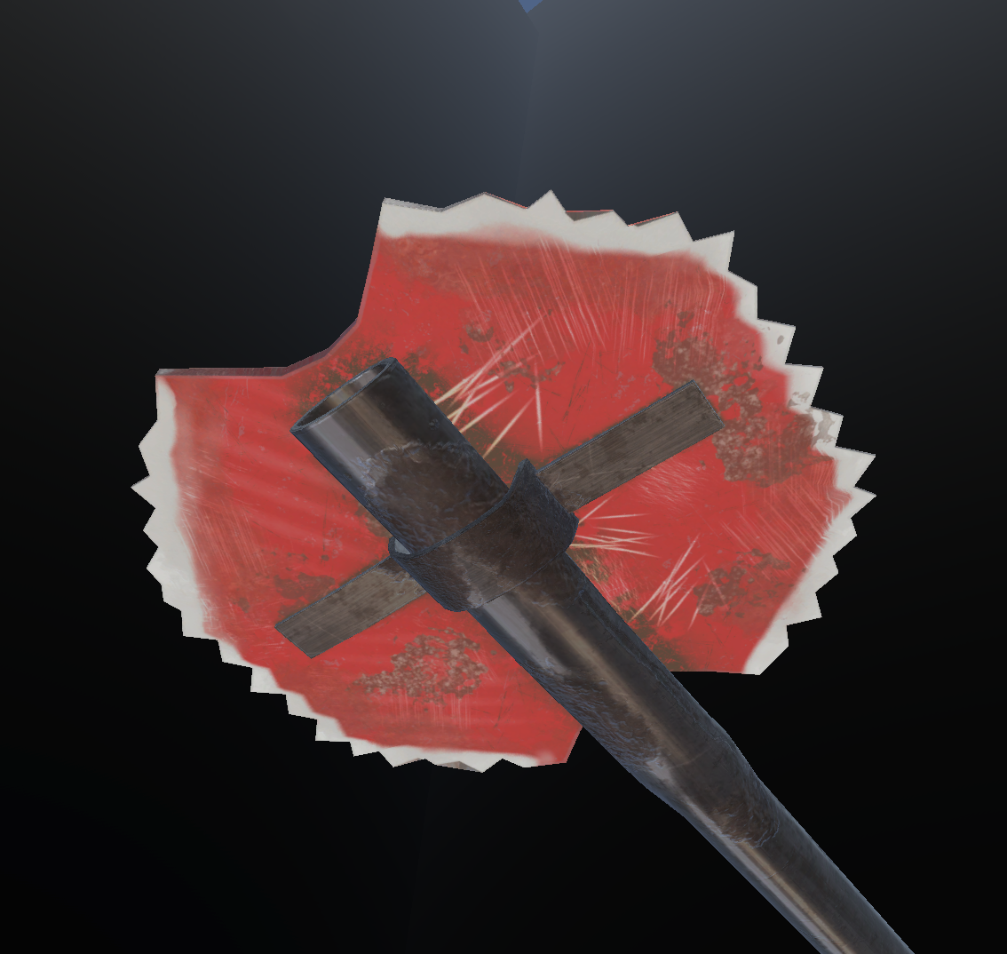 An axe crafted out of a stop sign in the wasteland aftermath of the world. Great for any sort of zombie apocalypse or fallout themes.