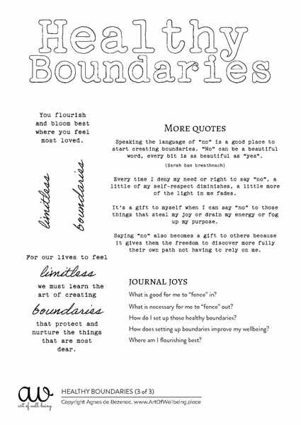 Welcome to the Art of Wellbeing Workbook project on Setting Boundaries. This page and many more are specially created to inspire you in your wellbeing and self-care journey.