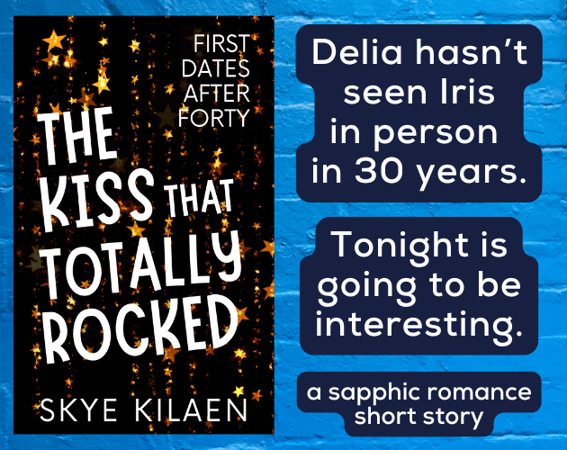 THE KISS THAT TOTALLY ROCKED is a kisses-only sapphic first date short story with middle-aged main characters, a retro rock show with a twist, and an HEA for a slightly clueless bi gal and the lesbian cosmetologist of her dreams.