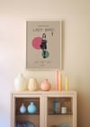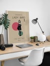 Elevate your space with this stunning Digital Lady Bird Mid Century Movie Poster. Click "Add to Cart" now and bring a piece of cinematic art into your home today!