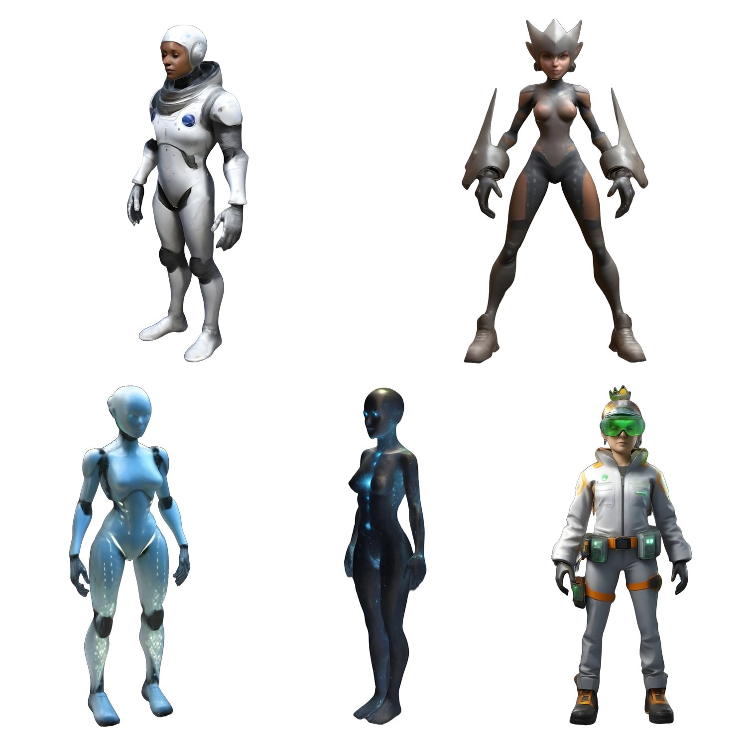 Introducing the Futuristic Character Pack - a collection of five unique and visually captivating sci-fi character designs perfect for 3D printing, gaming, or creative projects. Each character embodies a distinctive futuristic theme, from an advanced astronaut to a sleek, otherworldly being.