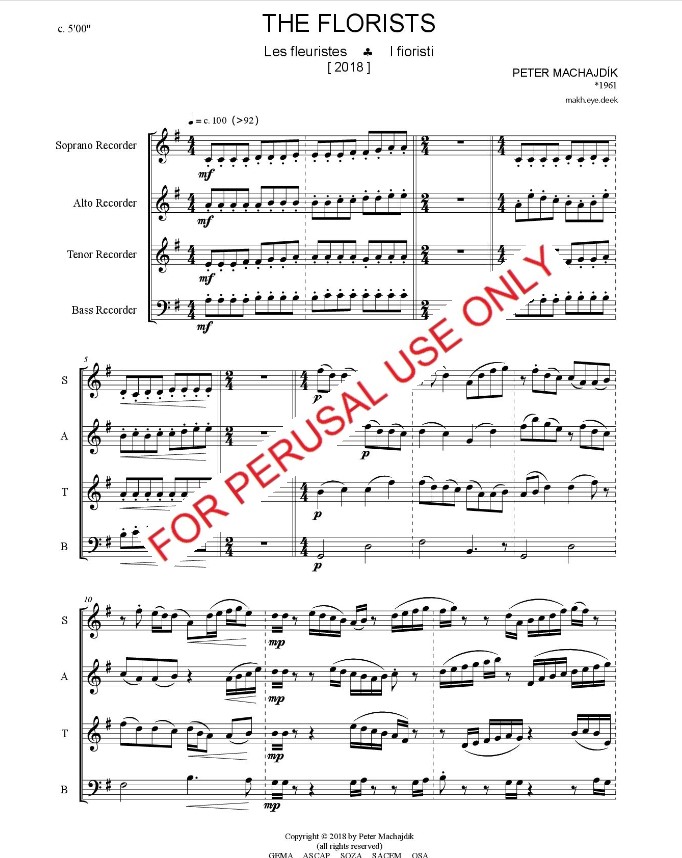Peter Machajdík: THE FLORISTS for recorder quartet
