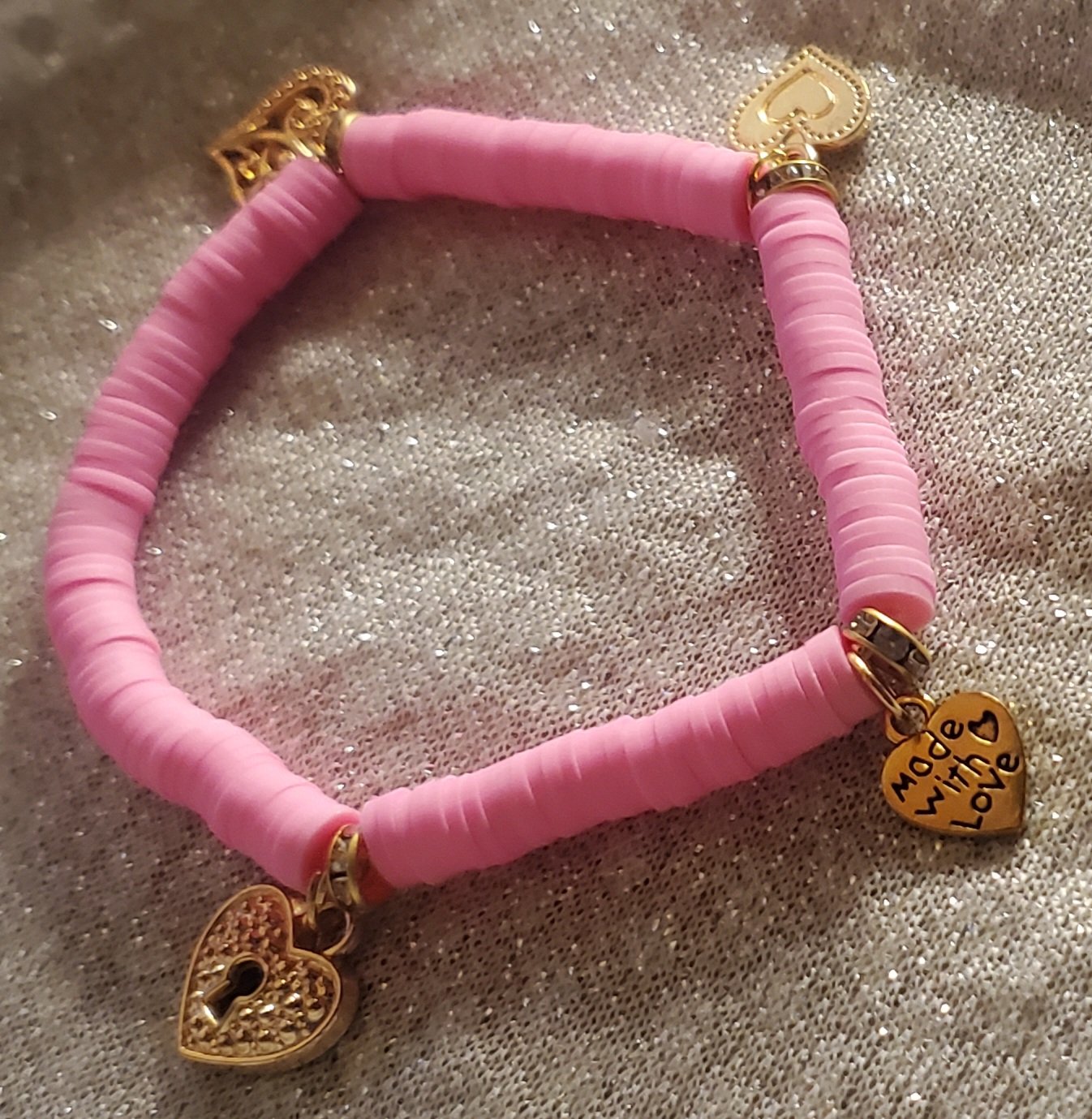 📦Hot Pink Clay Bead Charm Bracelet #HPCB8
