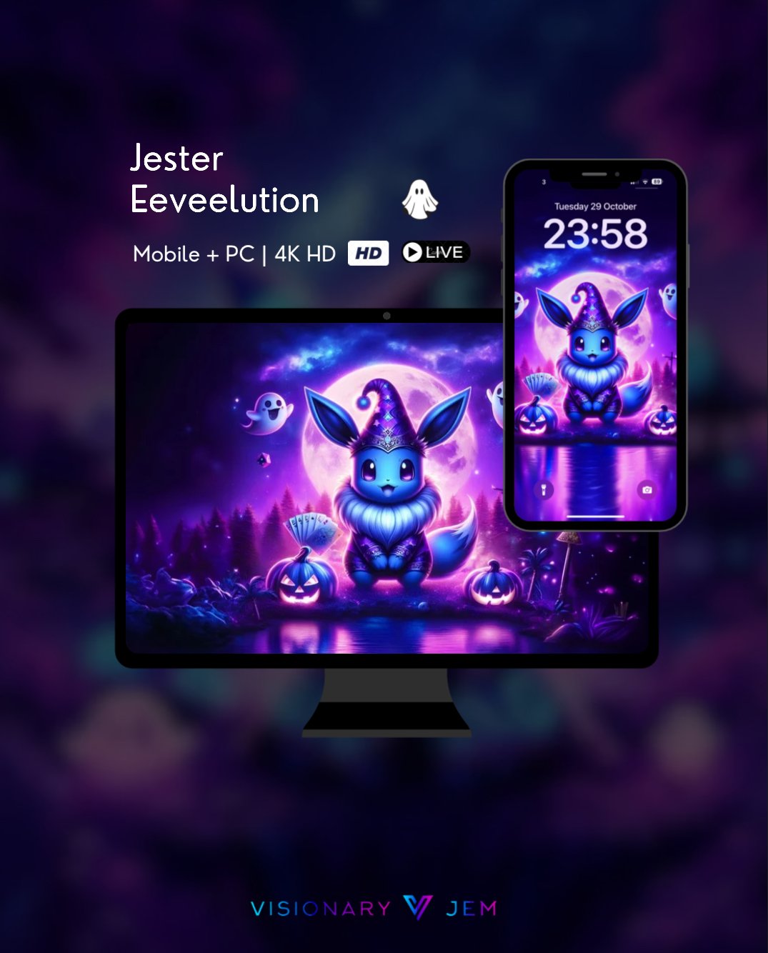 Jester Eeveelution | Halloween Edition - 4K LIVE HD WALLPAPER | Mobile + PC