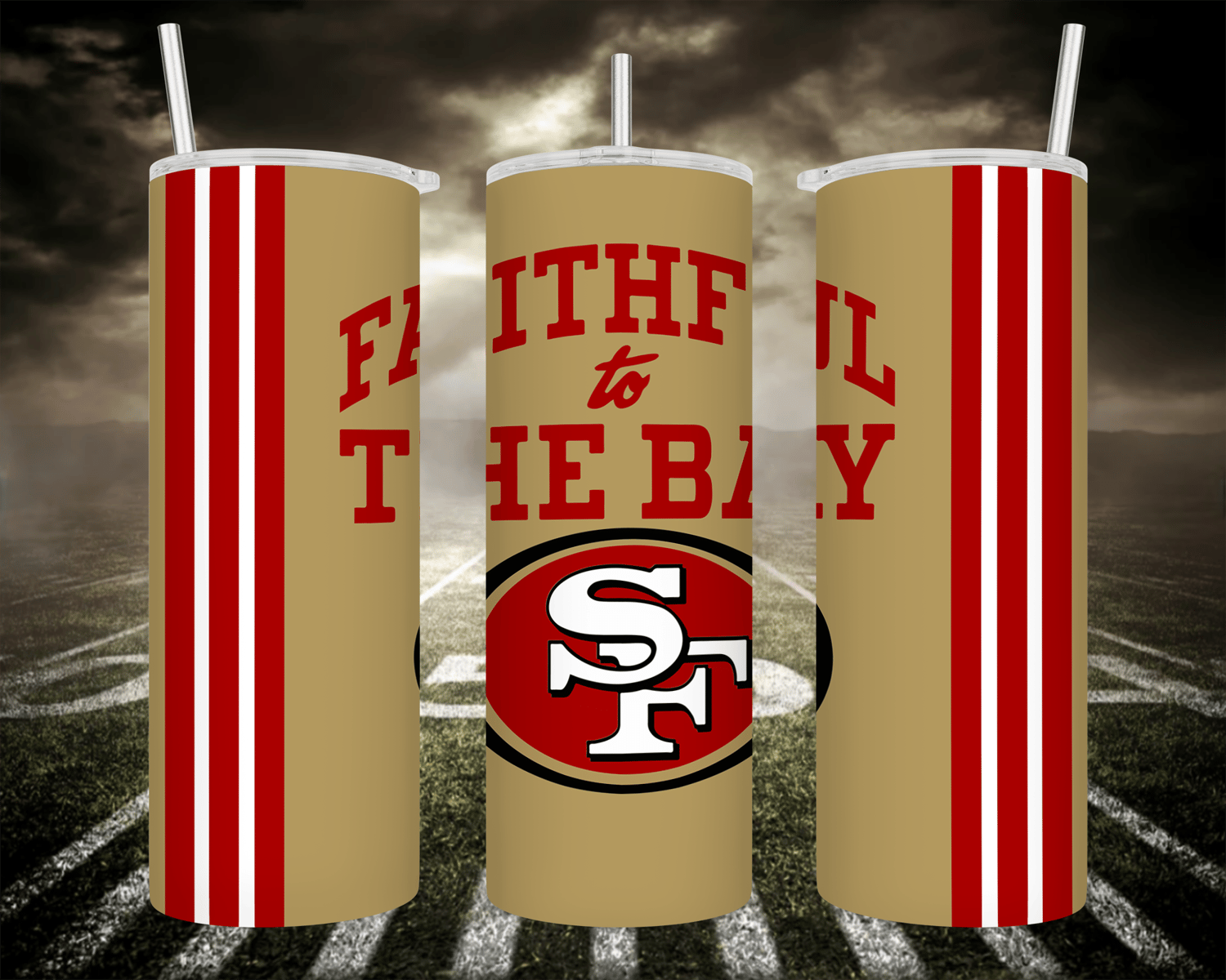 FAITHFUL MOCKUP.png San Francisco 49ers- Faithful To The Bay - 20 oz Skinny Tumbler Wrap - Sublimation Design - PNG file
