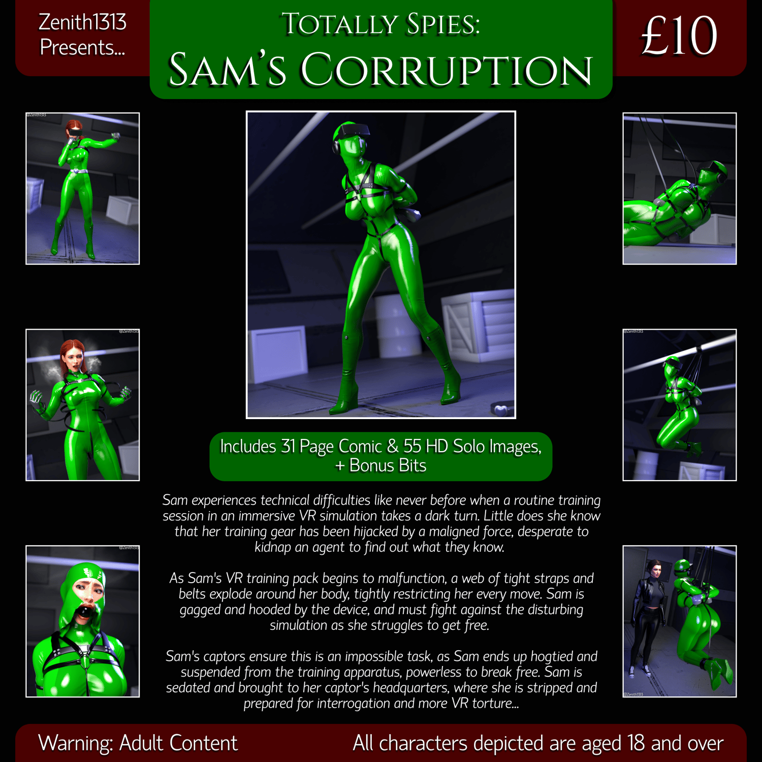 - Sam’s training pack ‘malfunctions’, ensnaring her in a web of tight belts, while also deploying a large ballgag, mittens, and constricting rubber hood. As the belts continue to appear, Sam becomes increasingly immobilised (28 images)